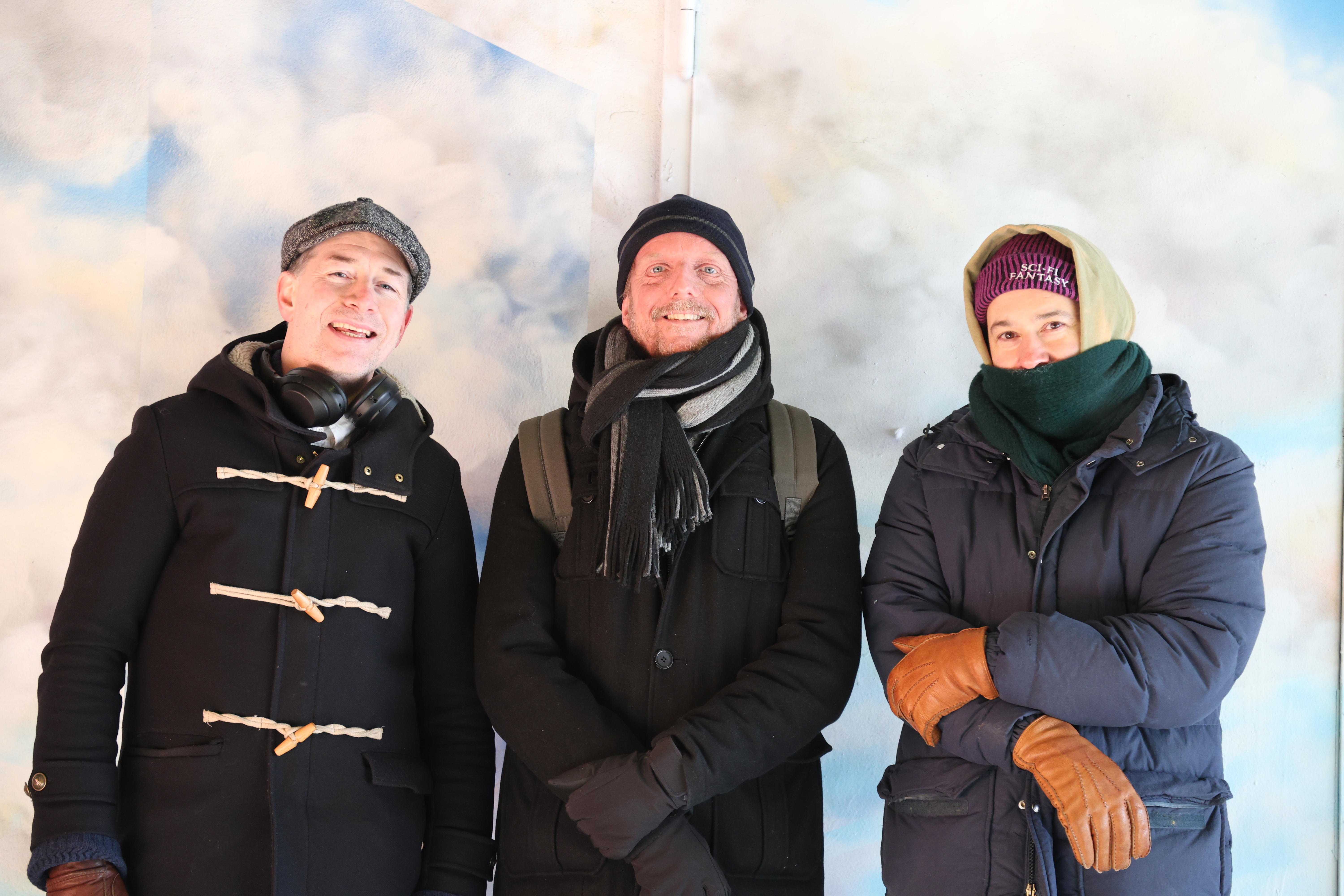FORNØYDE KUNSTNERE: Dag E. Clausen (f.v.), Espen Sørli og Øivin Horvei har gjort Bydel Grorud til et langt mer fargerikt sted i løpet av 2023. FOTO: Tom EvensenBilde 1 av 9
