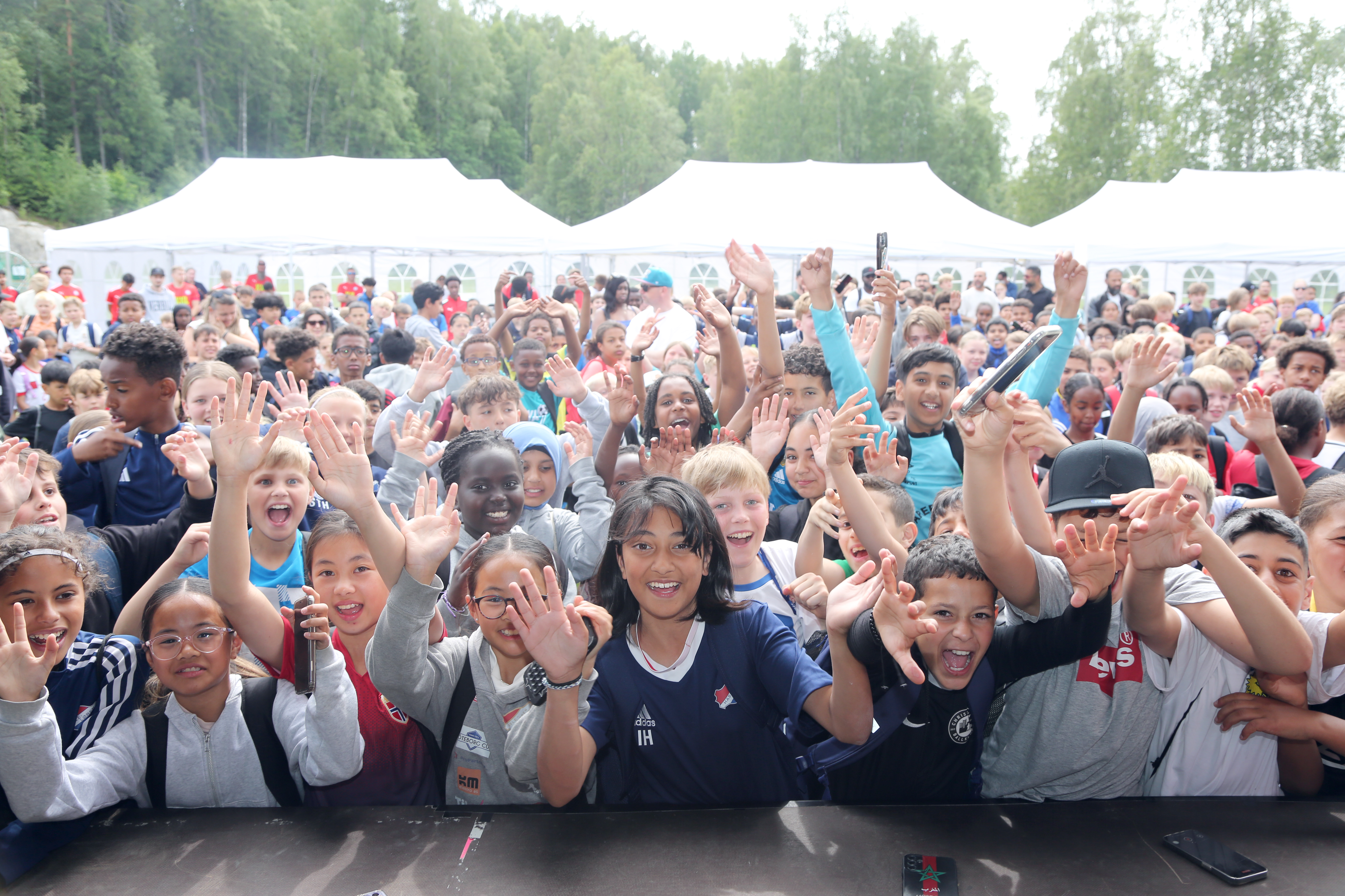 Ellers var det mange ord på veien fra scenen til de unge og håpefulle om at helgas trening også dreier seg om fotballglede, samhold, fellesskap og møte nye venner. Ildsjelprisvinner Adnan Naeem minnet blant annet på at det i løpet av helgen skal kåres en Fair-play vinner i hver av gruppene. Det går ikke på fotballkunnskaper, men på holdninger, hjelpsomhet og lagsamspill. Sammen med Joshua fikk han hele forsamlingen til å rope ROMSÅS så det kunne høres helt opp dit – hvor de begge er vokst opp.