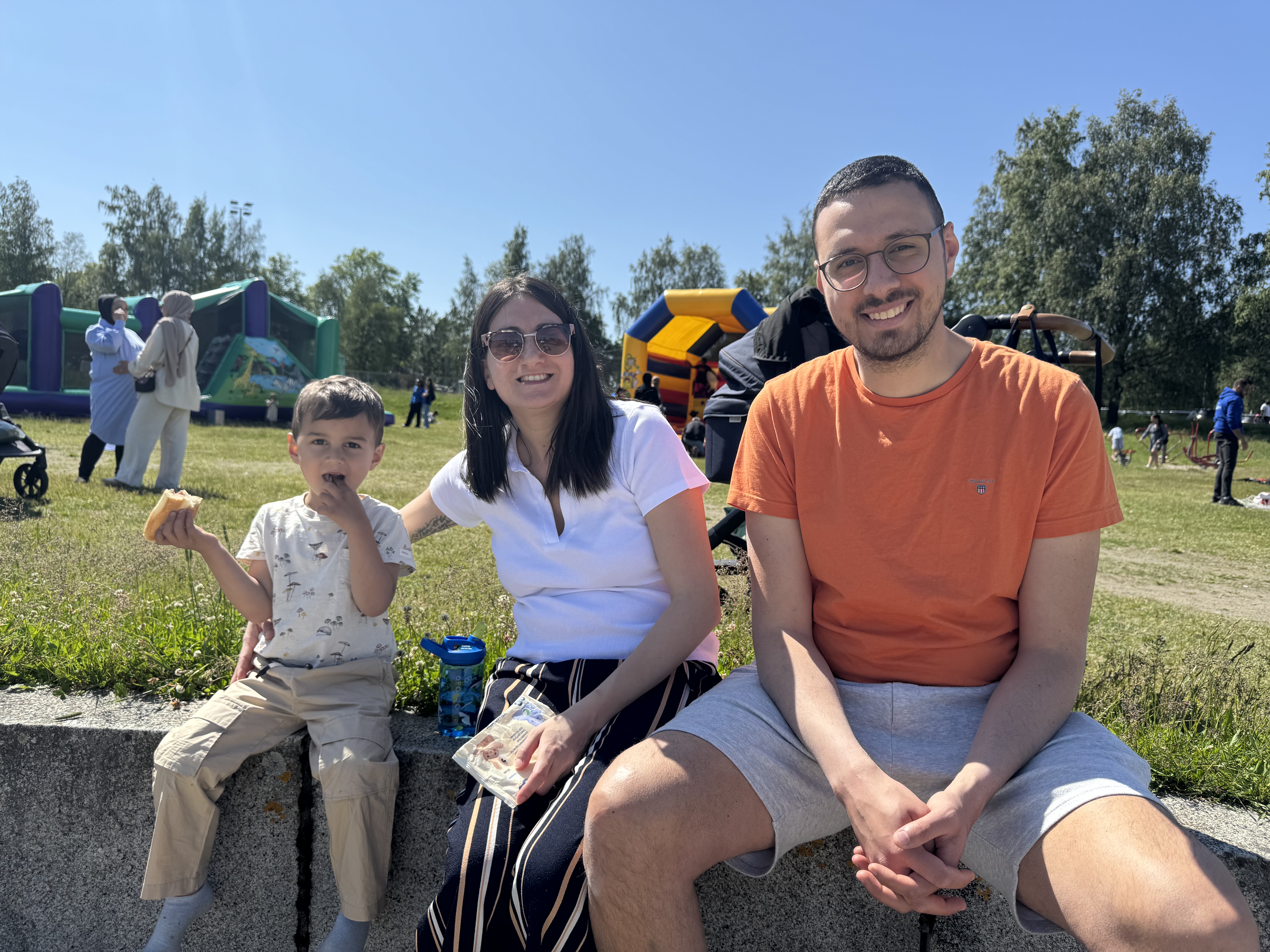 MER AV DETTE: Mohamed med kona Stefania og sønnen Samir hadde en liten matpause da avisa snakket med dem. Furuset nabolagsfestival ga mersmak, sier de.