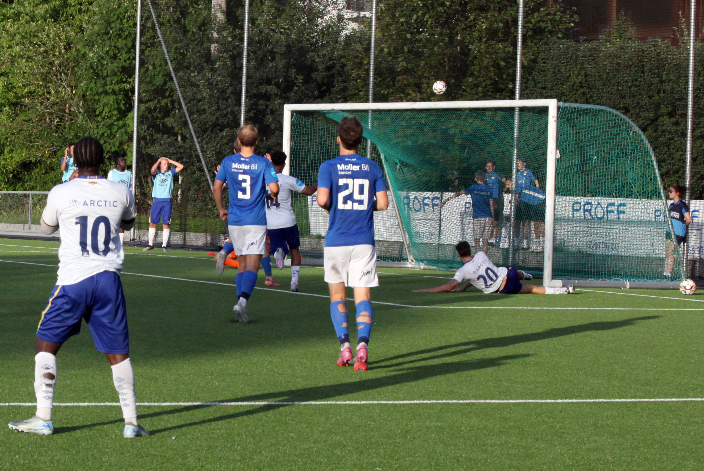 BARE NESTEN: Luka Fajfric (20) kan bare konstatere at ballen suser over tverrliggeren. Dermed ble det ikke nettkjenning, hverken på ham eller andre Grorud-spillere. Kjelsås sto derimot for kampens eneste mål, og etter en jevn og intens kamp er det de som går videre til neste runde av cupen. FOTO: Rolf E. WulffBilde 1 av 13