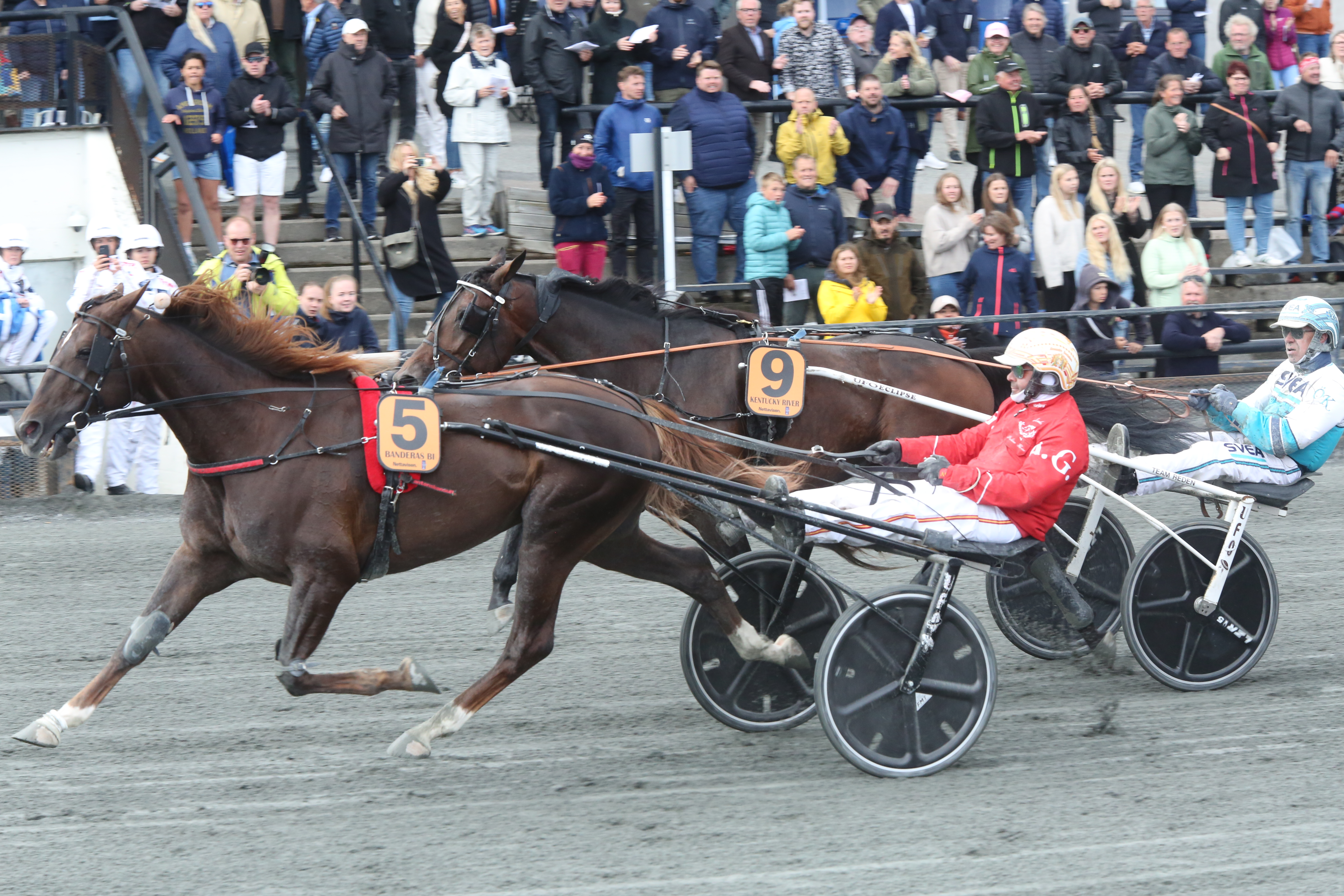 INGEN TVIL: Da Banderas-Bi med Allesandro Gocciadoro i sulkyen satte inn sluttspurten var det ingen tvil om at det skulle bli seier i årets Oslo Grand Prix. FOTO: Rolf E. WulffBilde 1 av 6