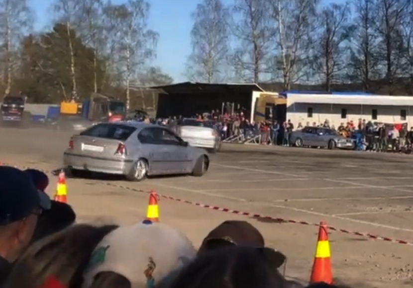 Det var satt opp en provisorisk planketribune, og det var her de fleste av de anslagsvis 800 tilskuerne sto og satt. Det eneste som skilte publikum og bilene som freste rundt på asfalten noen få meter unna, var et plastikkbånd. Derfor måtte det gå galt når det først gikk galt, da en av sjåførene mistet kontrollen og nærmest skled baklengs inn på tribunen. Syv mennesker ble sendt til sykehus. I ettertid sies det at ingen av dem ble alvorlig skadet.