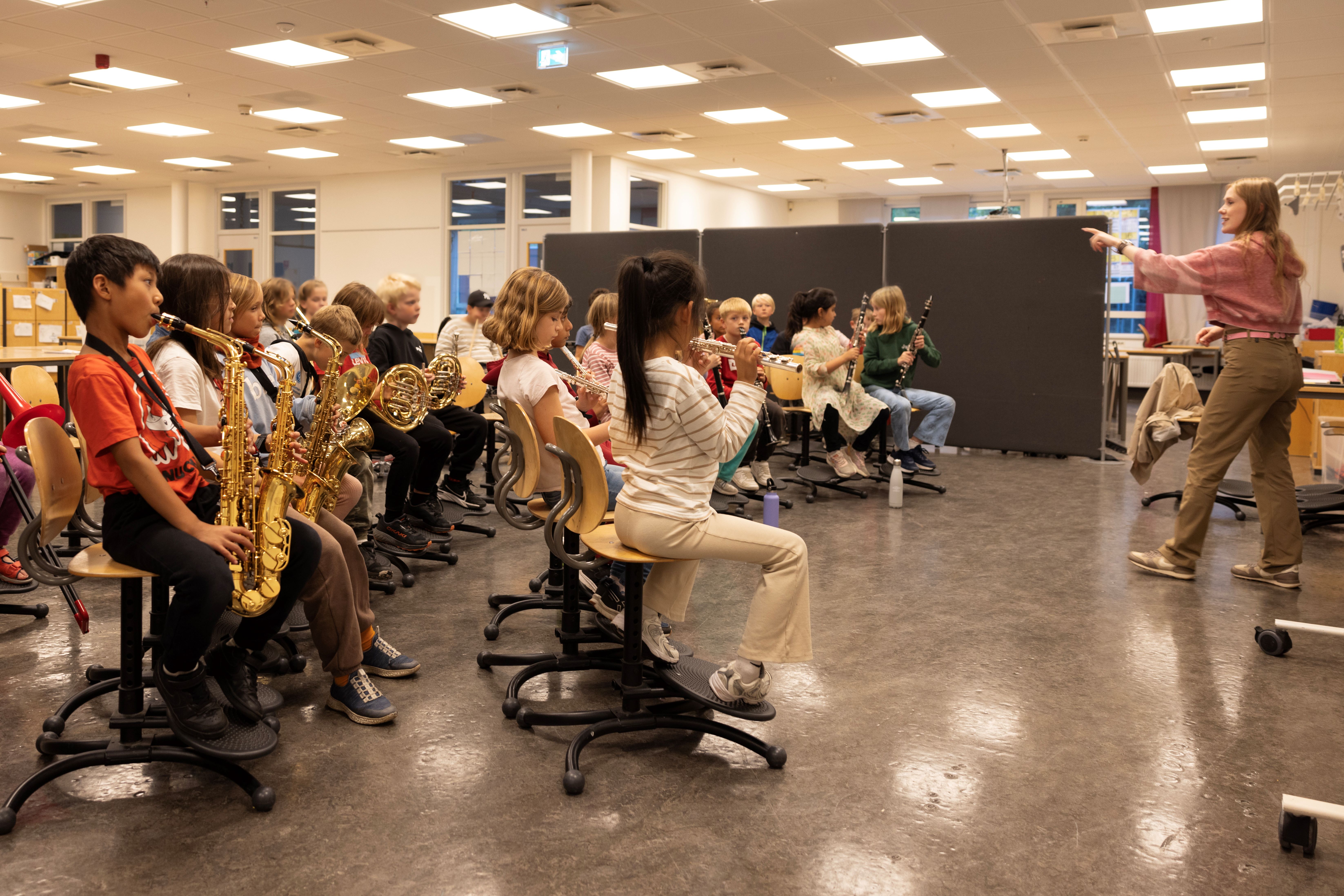 GODT I GANG: Aspirantene er allerede i gang med samspill og øver sammen med den nye dirigenten Marta Hagen. (Foto: Stian Nybru) FOTO: Stian Nybru 30 nye aspiranter til musikkorpset: – Det er faktisk flere enn en skoleklasse Martine Myhre Shurdhiqi Publisert 25. sep 24 kl. 12:00 Oppdatert 25. sep 24 kl. 13:02 Del på sosiale medier Del Facebook Twitter E-post Abonnement