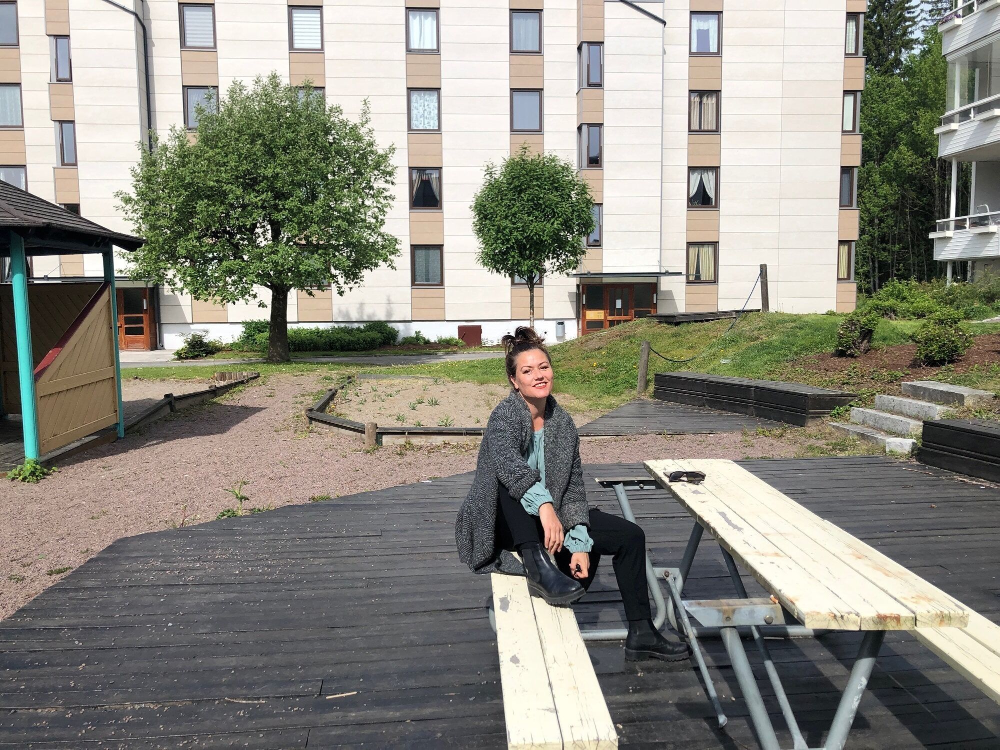 Etter mange år i utlandet har Laila Samuelsen fått kjenne på hjemlengselen. Hun har savnet norsk vær og natur, familie og venner. Nå sitter hun på en benk på Smedstua borettslag, utenfor blokka der faren fremdeles bor og kjenner på gleden av å være hjemme.