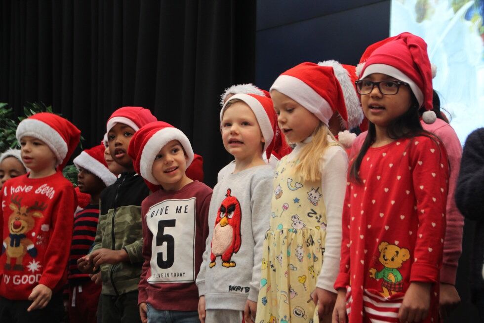 Tradisjonen tro stilte både Grorud Rotary Club og barn fra Ammerudlia barnehage opp for å ringe jula inn på skikkelig vis på Ammerudhjemmet bo- og kultursenter.