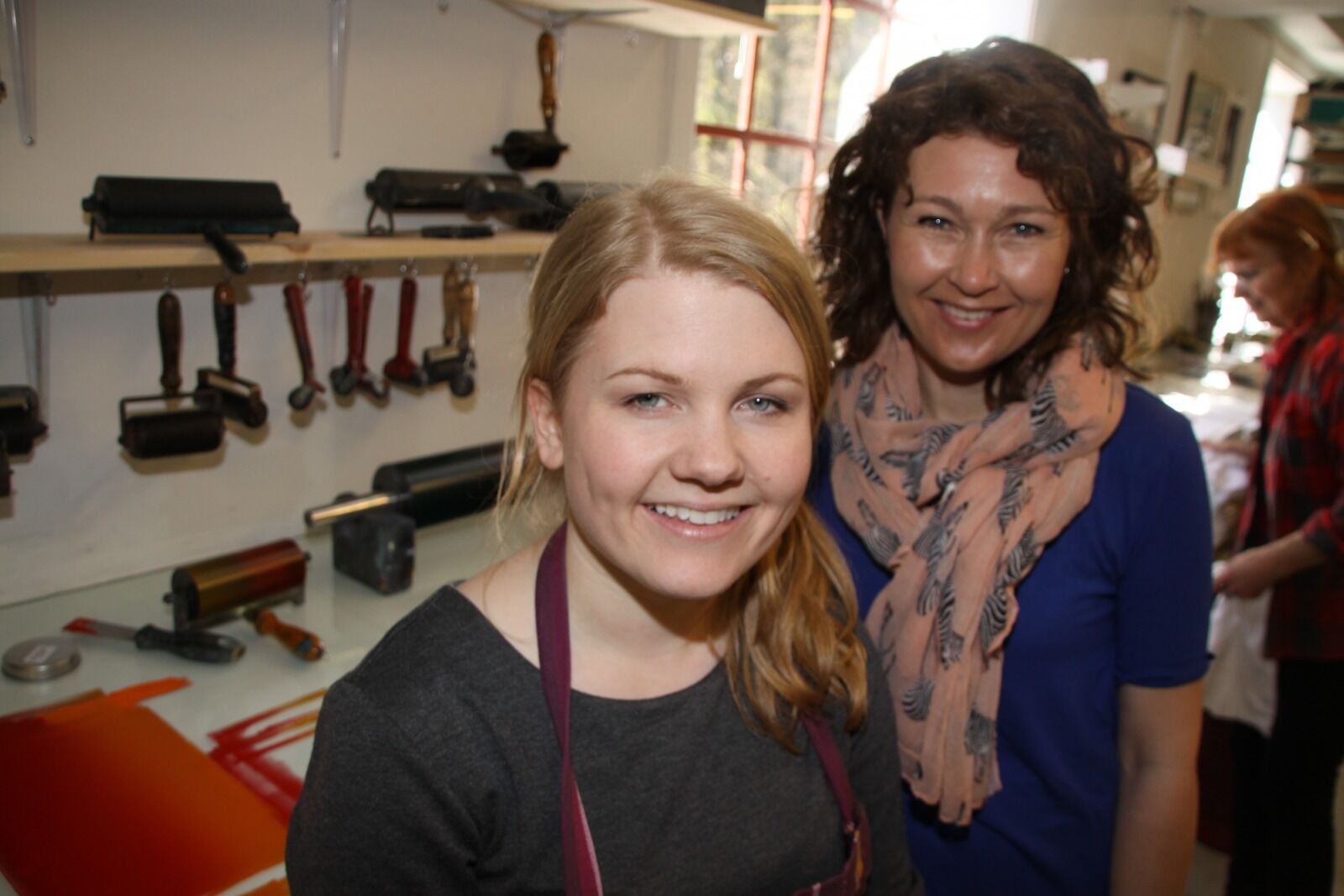ÅPEN DØR: Linda Hærnes (f.v.) og Ellen Edminson ved Norske Grafikere åpnet dørene for de minste lørdag. De åpner også dørene i morgen, søndag. Foto:Bilde 1 av 1