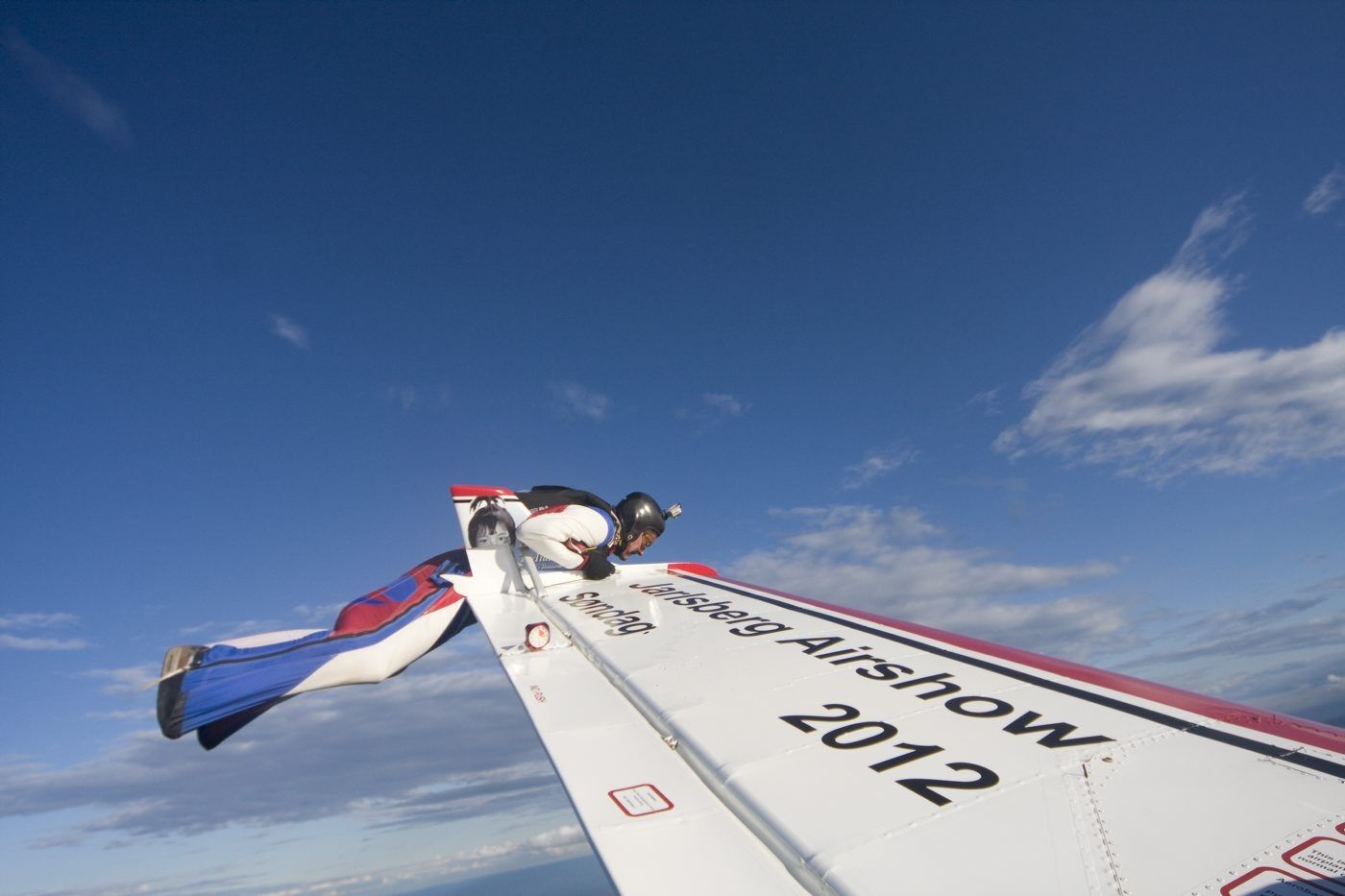 Terje Halvorsen fra Årvoll skal sammen med Jan Petter Larsen gjøre et stunt ingen i verden har gjort tidligere. Iført vingedrakter, vil de kaste seg fra vingene på et fly og sveve over til vingene på et annet fly i en fart på mellom 100 og 150 km/t.