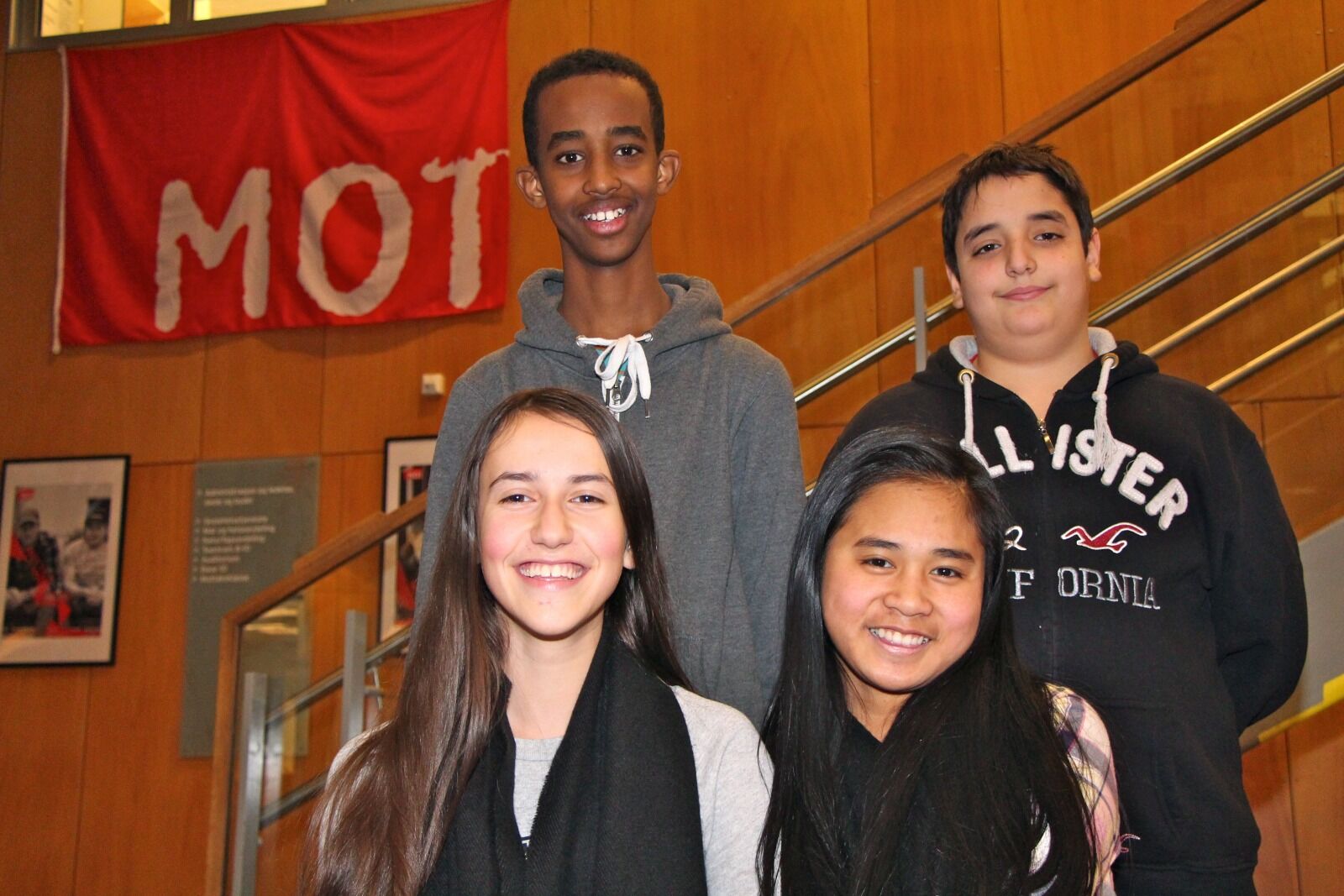 MOT skal bevisstgjøre og styrke ungdoms mot til å si nei og motstå gruppepress. De samarbeider med 300 skoler i hele Norge. Én av disse er Rommen skole. Juliana, Wardi, Victoria og Yousef har nettopp gjennomgått første økt.