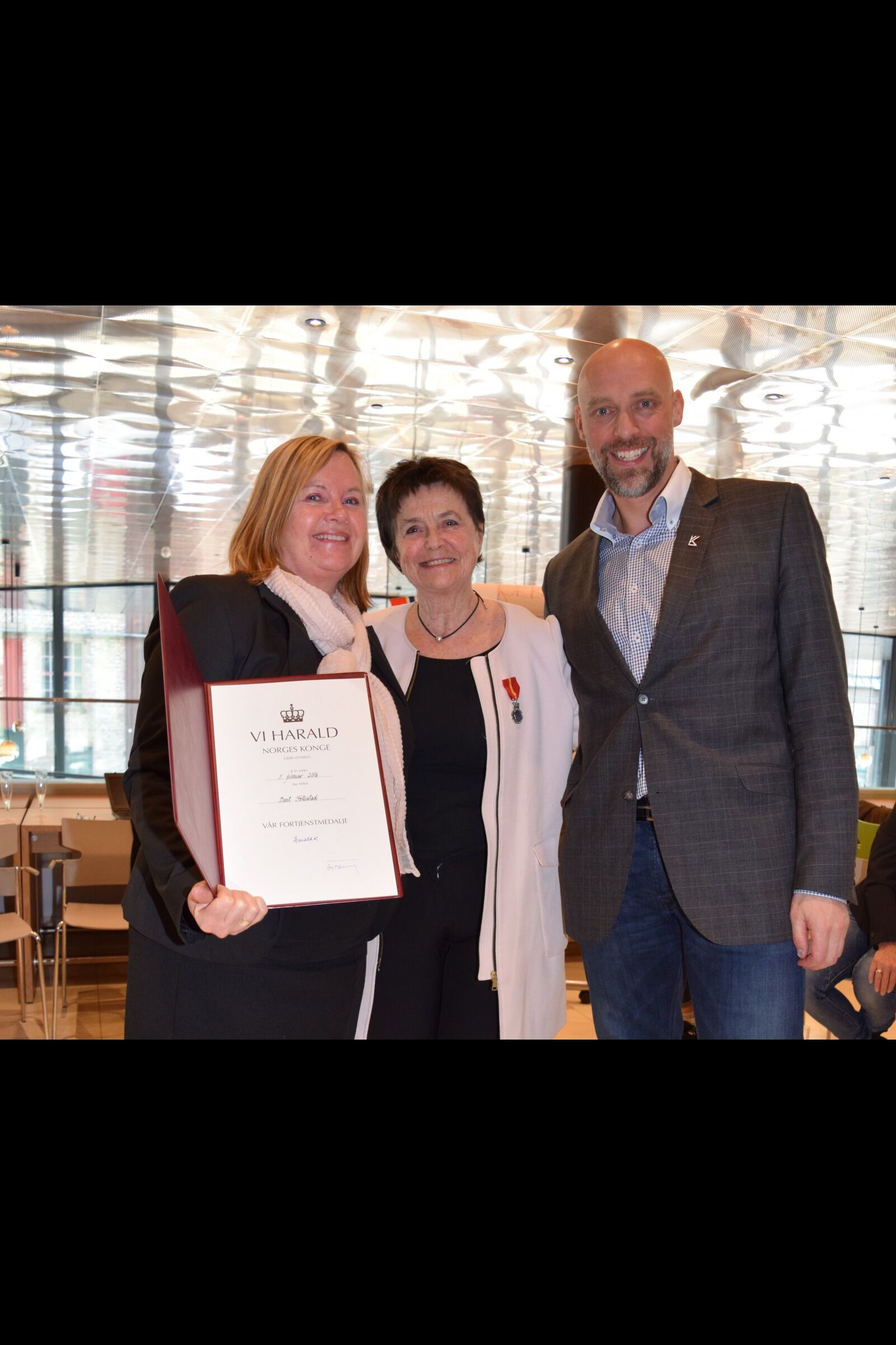 KONGENS FORTJENSTMEDALJE: Berit Follestad (midten) ble overrekt Kongens fortjenstmedalje av Nina Wroldsen, styret i Trygg Læring Norge, og Kjell Ove Hauge, rektor ved Kuben vgs. Foto:Bilde 1 av 1 Berit fikk Kongens fortjenstmedalje Mie Andersen Publisert 16. mar 16 kl. 11:00 Del på sosiale medier Del Facebook Twitter E-post Abonnement