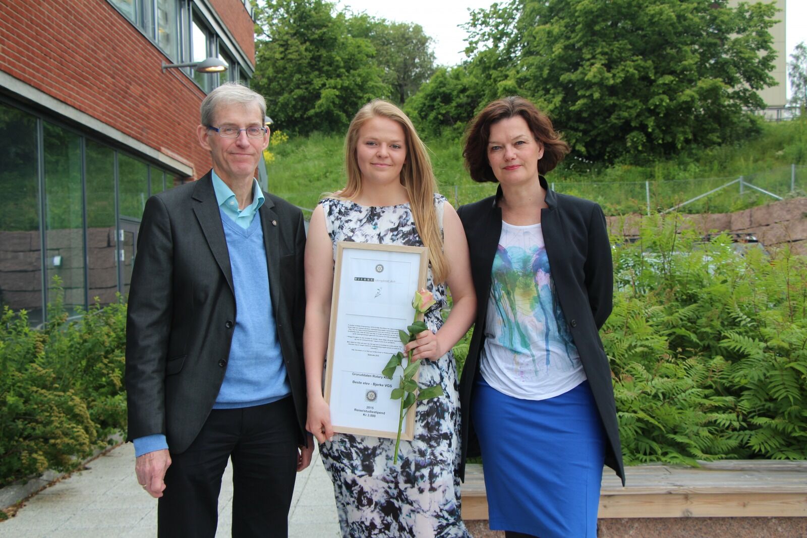 VERDIG VINNER:President i Groruddalen Rotary Klubb, Egil Thorstensen sammen med prisvinner Silje Henriksen og rektor Astrid Grytte. Foto:Bilde 1 av 1 Best på Bjerke Martine Myhre Publisert 1. jul 15 kl. 13:00 Del på sosiale medier Del Facebook Twitter E-post Abonnement