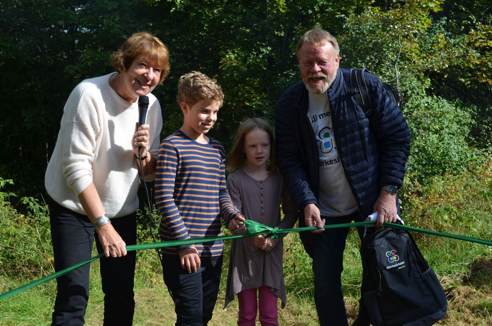 Det var både store og små som hadde tatt turen til markaportalen bak Krigsskolen for å delta på åpningen av Bjerkesirkelen.