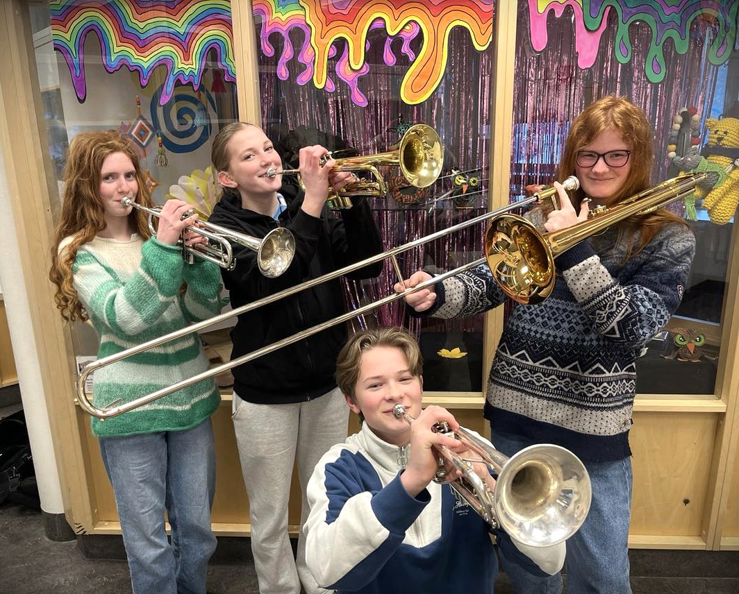 – Vi har skrevet manus selv og håper å inspirere publikum til å tørre å gå sine egne veier, sier trompetist Edvin Ekvang (14).