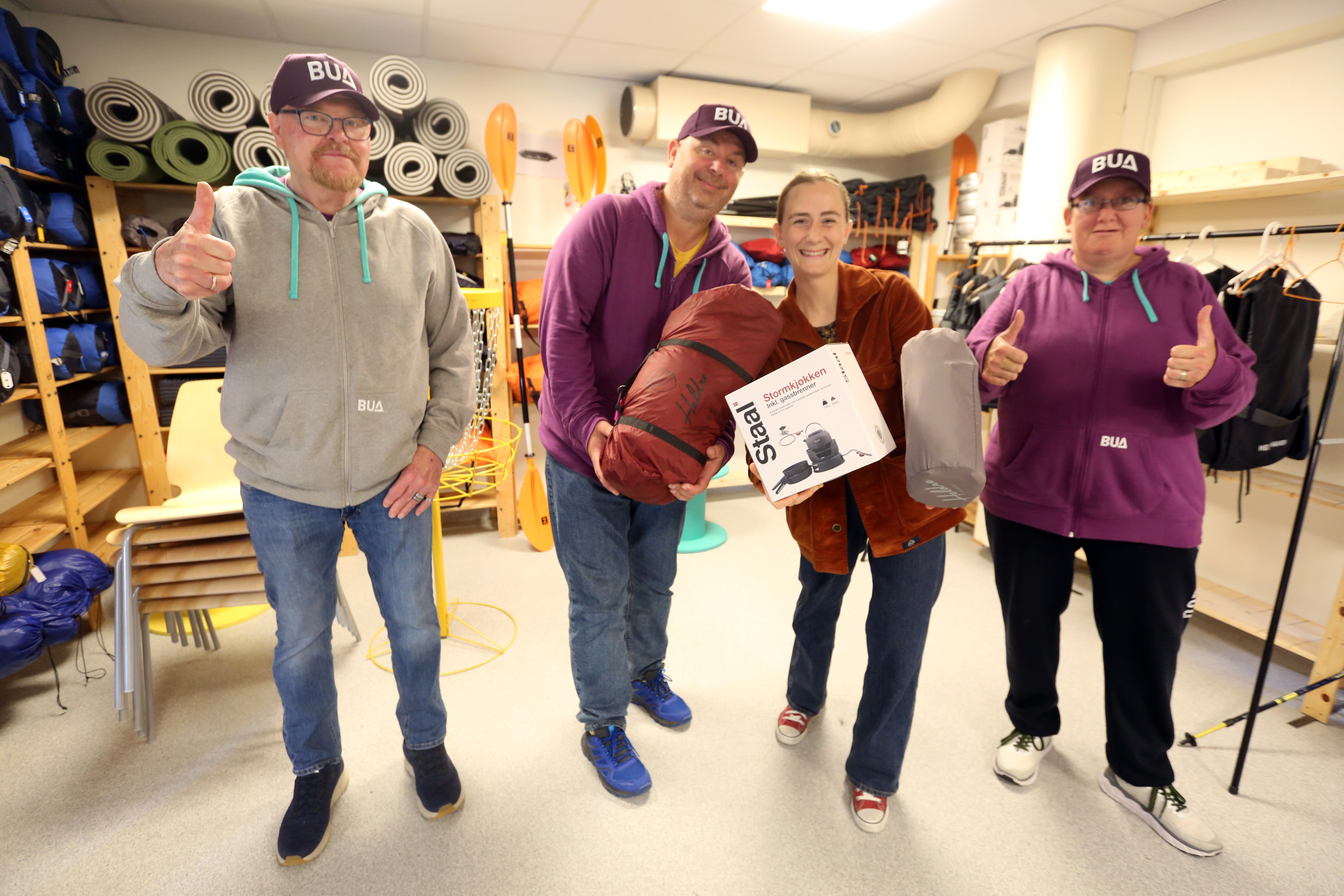 June Engeland har tatt turen til BUA på Romsås. Hun trenger et stormkjøkken, liggeunderlag og et tremannstelt. Få minutter senere forlater hun BUA med alt hun har spurt om, minus tremannsteltet – hun endte opp med et firemannstelt!