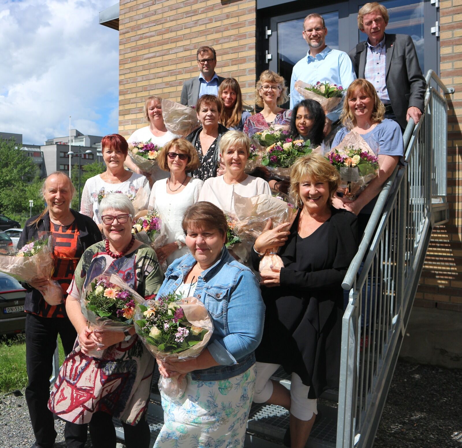 MANGE JUBILANTER: Her er 40- og 25-årsjubilantene som var til stede på markeringen. Foto:Bilde 1 av 1 Bydelen hyllet de ansatte Martine Myhre Publisert 17. jun 17 kl. 09:00 Del på sosiale medier Del Facebook Twitter E-post Nyhetsbrev Facebook Instagram Abonnement