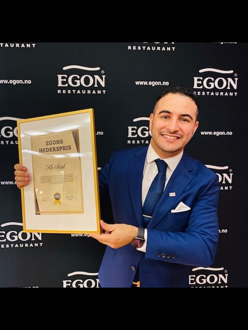 Det var i forbindelse med et ledertreff med 230 ledere fra Egon-kjeden at restaurant-giganten delte ut diverse priser for å gjøre stas på både restauranter og kolleger som hadde utmerket seg i 2019. Ali Said er til daglig nestleder på Egon Byporten, der han har jobbet i nesten 20 år. Han stakk av med hedersprisen som ble delt ut for første gang.