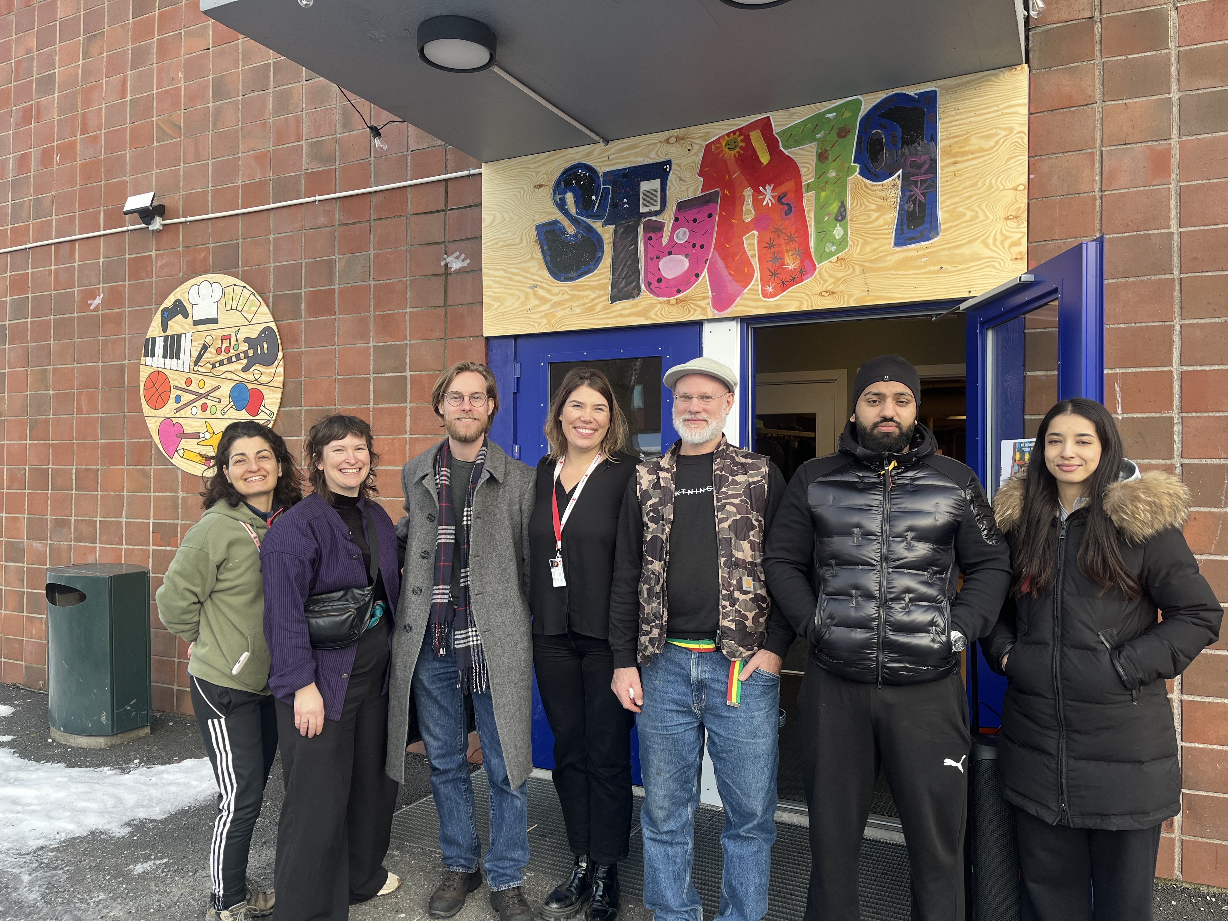 FEIRET: Sherry Hakim (Stua 79 ungdom, Bydel Stovner) (f.v.), Thor Elbrønd (Byantropologene), Katja Bratseth (Byantropologene), Thale (Redd Barna), Dominic (Redd Barna) og forumledere Hamza Riaz og Nour Romman fra Redd Barna feiret fritidsklubbens åpning av mer fargerike og innbydende uteområder.Bilde 1 av 2