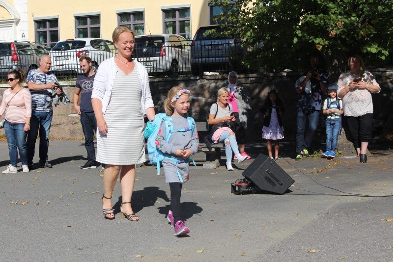 Man kunne ikke bedt om bedre iscenesetting av første skoledag på Bryn, der like spente barn og foreldre samlet seg i skolegården mens sola skinte fra en knallblå himmel.