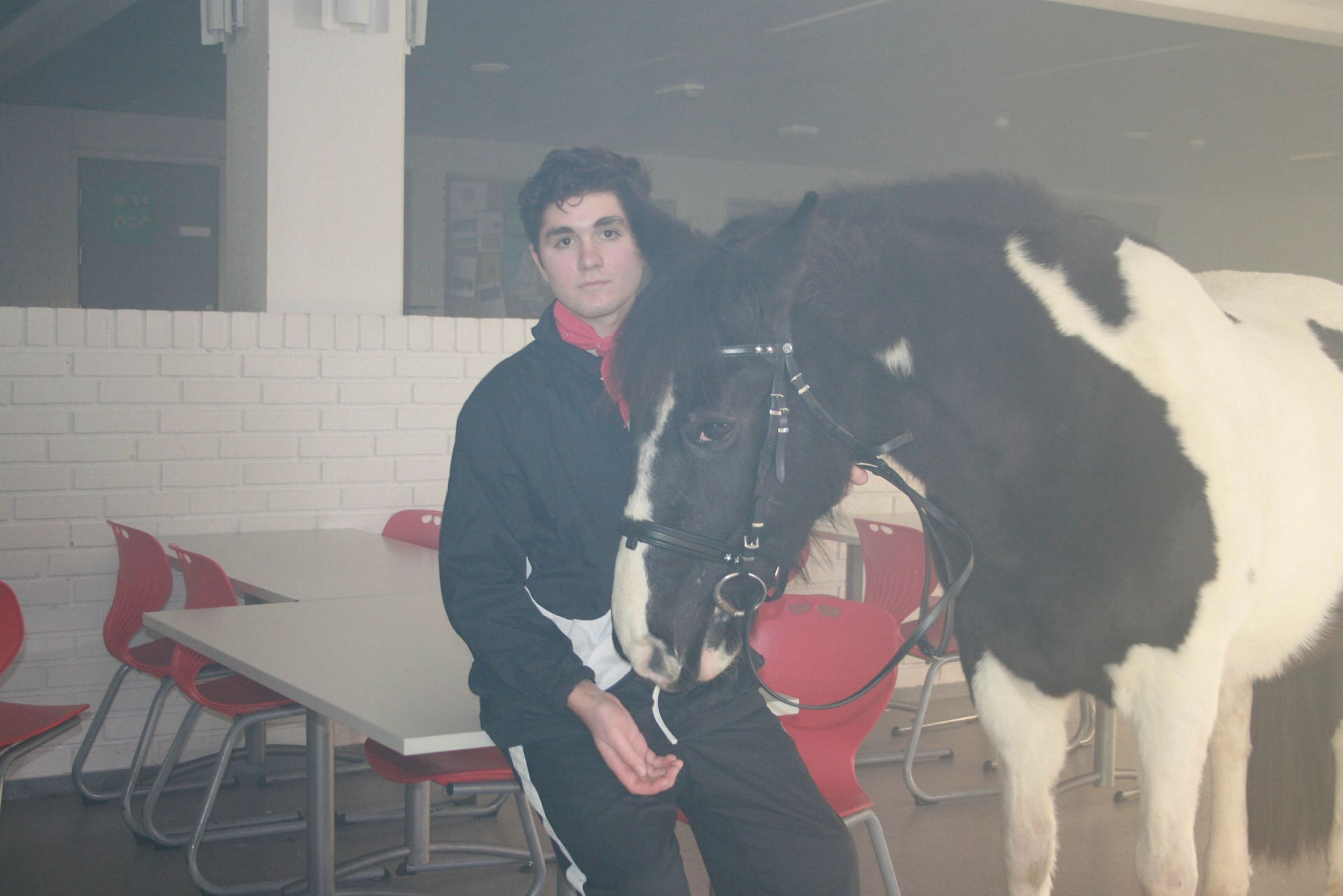 Ja, det er helt sant. Fredag ble det gjort opptak i kantina på Stovner videregående. En av hovedrollene hadde hesten Pollyanna.