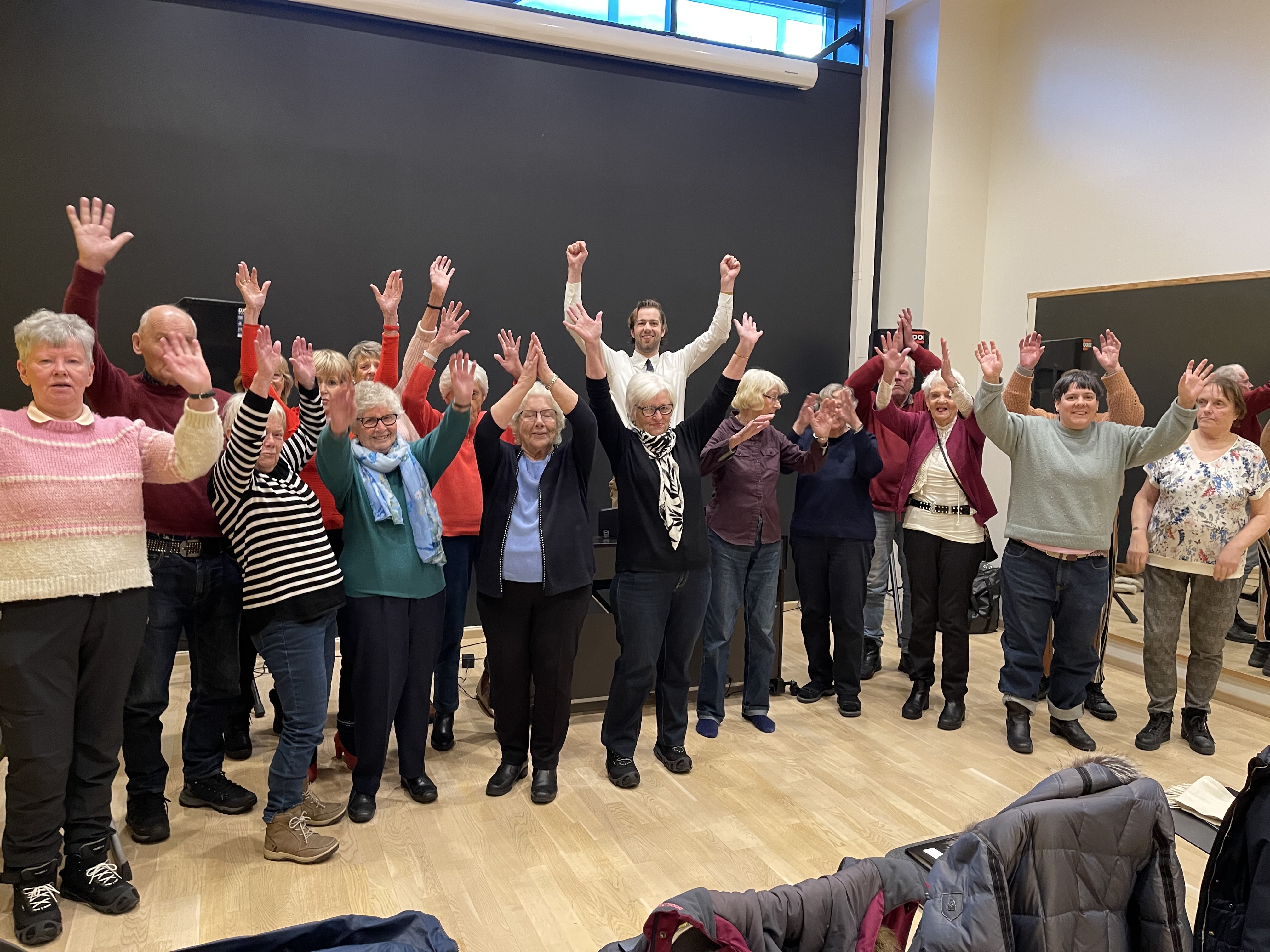 – Det kommer jo av at vi har fått en ny dirigent, han unge operasangeren på 30 år. Han er kjempeflink, og han er ikke høy på pæra heller, forteller hun smilende.