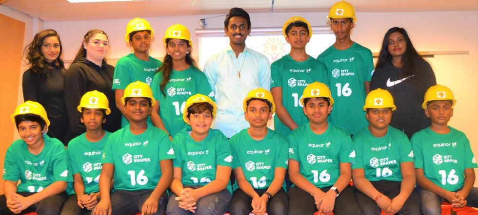 BYGGMESTERE: Tamil City Soultions med veiledere og og de grønnkledde entreprenørene. Her med Thinoosa Selvarajah (b.v), Thivanuya Chandramohan, Malaravan Sivanesan, Vilasini Vamathevan, Kantharaja Vamathevan, Kurishil Francis, Pakalon Nirmalan, Thushana Muraleetharan, Shanthos Muralitharan (f.v), Barathi Pirabu Kannan, Janujan Ragavan, Aron Chrisanthar, Akshan Vasanthakumar, Thilakshan Chandramohan, Samaran Vethananthan og Vivithan Thayananthana. Foto:Bilde 1 av 1