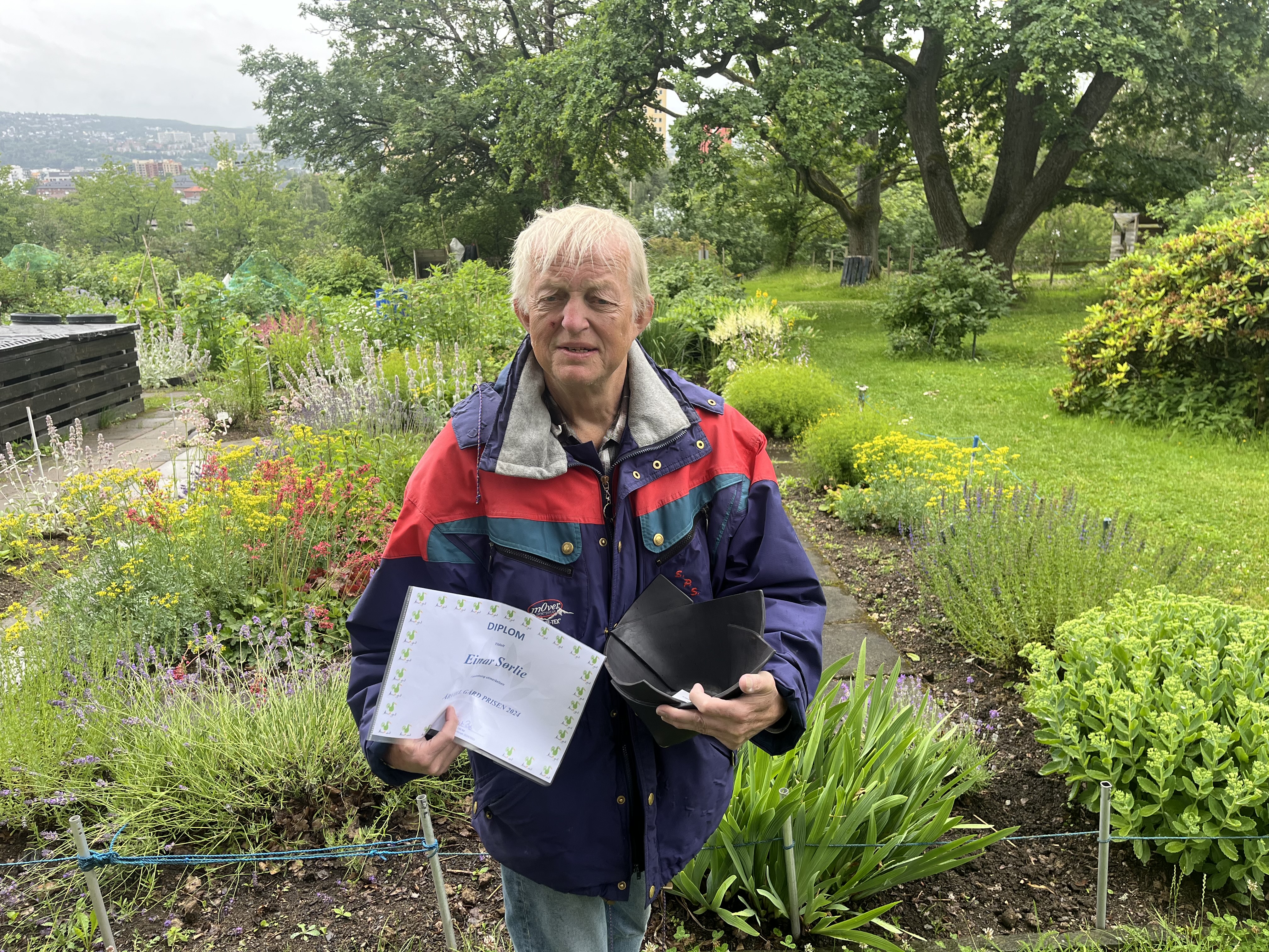 Einar Sørlie flyttet til Årvoll da han var seks år og engasjerte seg umiddelbart i den fascinerende og fargerike Årvoll gård. Sammen med sin far startet han etter hvert en blomsterparsell, og han ble en trofast deltaker på gården. I mange tiår har han spredt glede og kjærlighet til dem rundt seg, noe som nylig førte til at han på velfortjent vis ble tildelt ÅG-prisen.
