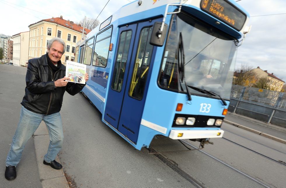 SKRIVENDE TRIKKEENTUSIAST: Ivar Sekne har skrevet historien om Ekebergbanen som han selv har et livslangt forhold til. Her i Oslogate i Bydel Gamle Oslo hvor dagens Ljabrutrikk passerer brua over jernbanelinjene før ferden bærer opp til Ekeberg. Foto:Bilde 1 av 3