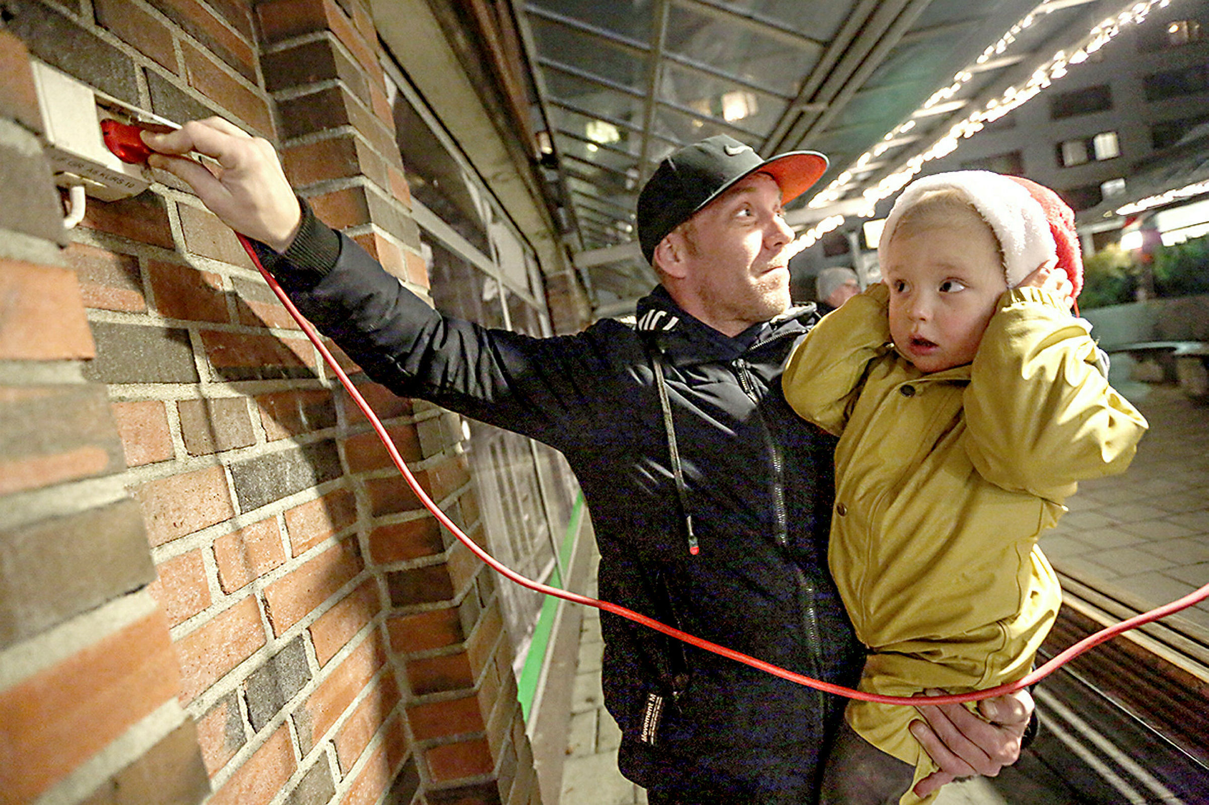 Om hun ikke akkurat satte i stikkontakten, var Else (3) i høyeste grad med da pappa Geir William Stenberg sørget for at lysene på julegrana ble tent på Ellingsrud senter.