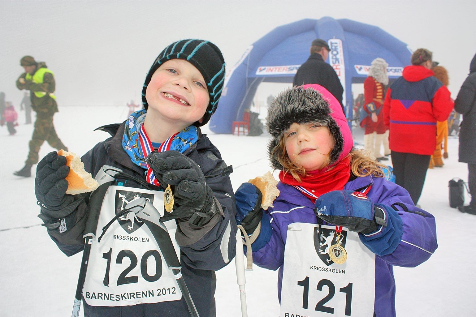 Eskil Brænden (6) og søsteren Guro (4) var begge på plass med ski på beina da Krigsskolen i helgen arrangerte sitt årlige barneskirenn. Eskil hadde derimot ikke forventet at melketanna skulle løsne mens han tråkket til i skisporet.