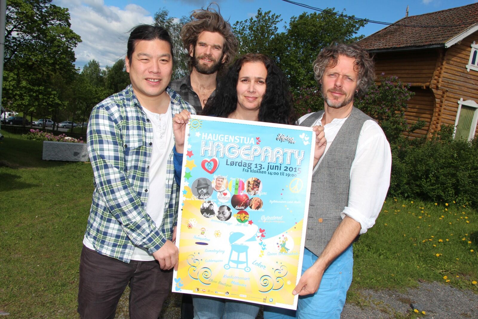 KLARE FOR FEST: Dhita Siauw fra Stig gård, Lars Kjemphol fra kunstnerne på Øvre Fossum gård, frivillig Anne Karima Nordengen og Åsmund Gylder fra Bydel Stovner gleder seg til folkefest for barn og familier på Haugenstua til helga. Foto:Bilde 1 av 1 Liv og røre på Haugenstua: Familiefest i «hagen» Caroline Bremer Publisert 10. jun 15 kl. 11:00 Del på sosiale medier Del Facebook Twitter E-post Abonnement