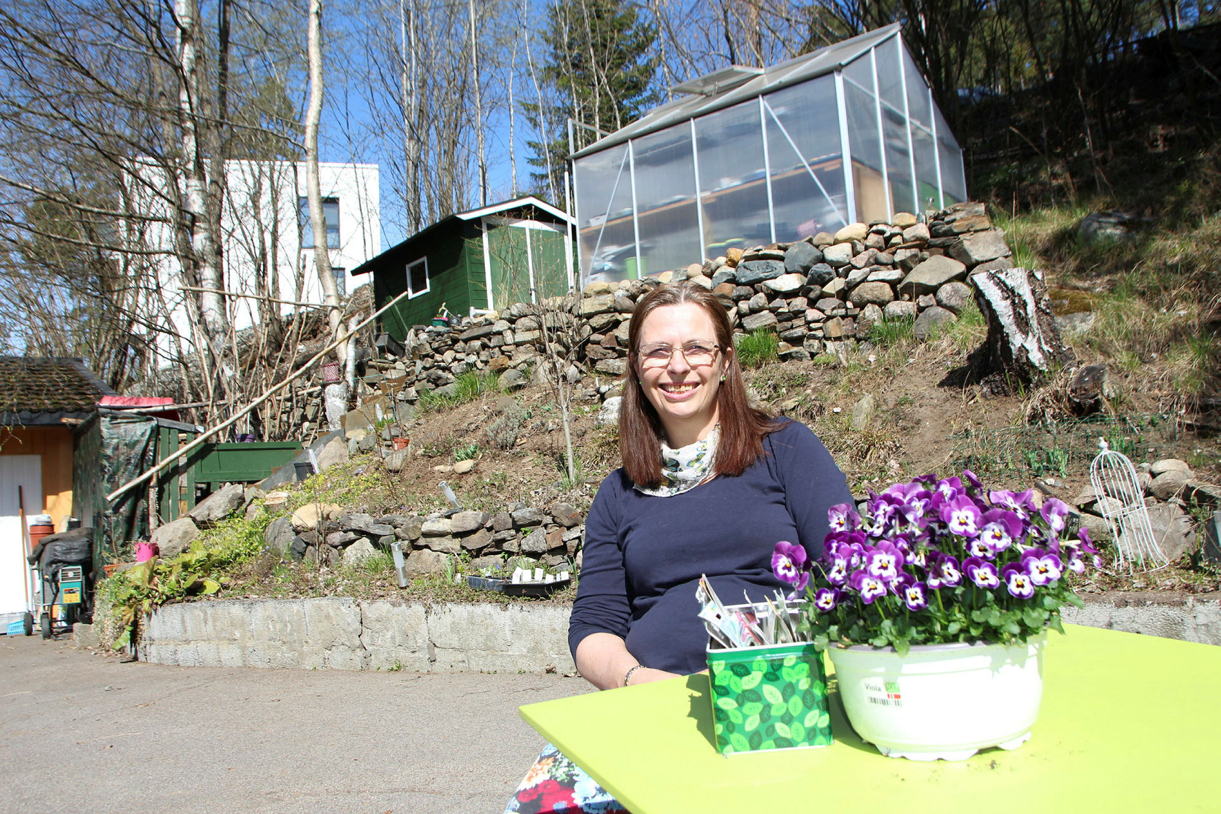 – TENKER KONSTANT PÅ BLOMSTER: Mona Vereecke vil si at hun er i overkant glad i blomster. Ser hun noen visne blomster, plukker hun dem gjerne med seg i alt fra kaffefilter til papirposer, for å se om hun kan så dem på nytt. Foto: Martine MyhreBilde 1 av 10
