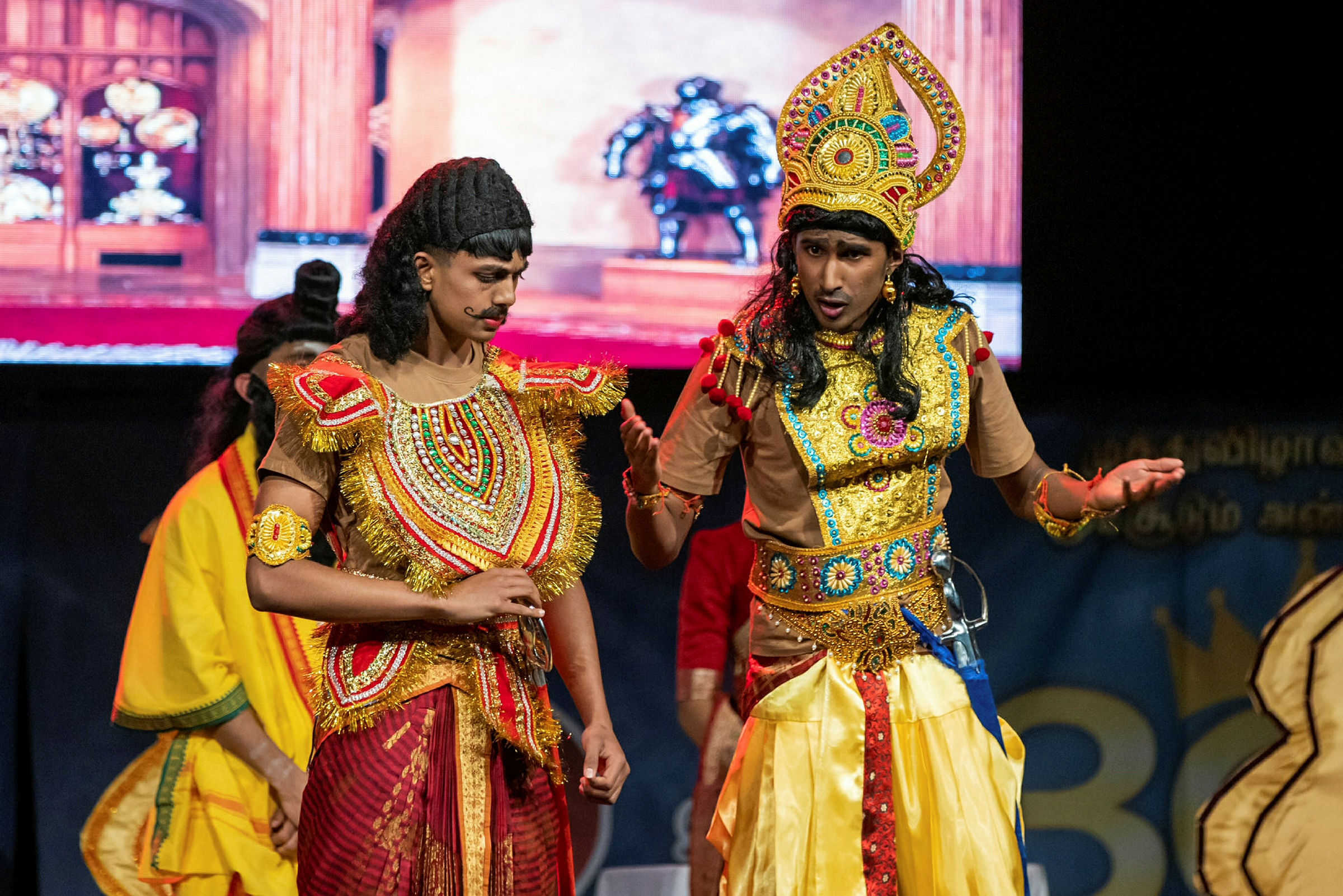 SKUESPILL: To elever i 11. klasse på Annai Poopathi Rommen spiller i et gammelt tamilsk eventyr. Foto: Athithyan ValluvanBilde 1 av 3