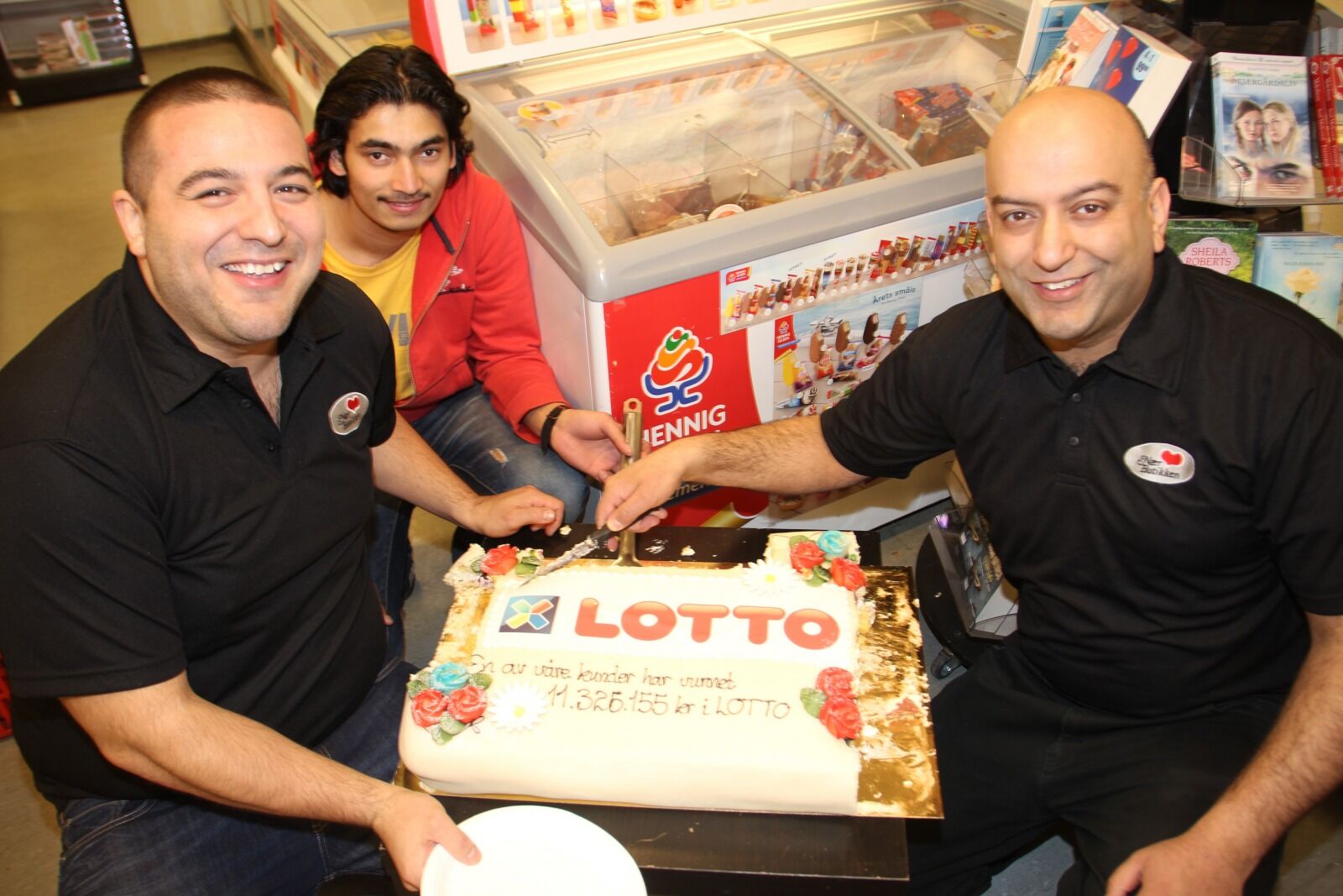 FEST FOR JOKERVINNER: Max, Pawah og Rehan fra Nærbutikken i Stjerneblokkveien feiret at vinnerloddet ble kjøpt hos dem. Foto:Bilde 1 av 1 Feiret Lotto-vinner Mie Andersen Publisert 28. mar 15 kl. 16:00 Del på sosiale medier Del Facebook Twitter E-post Abonnement