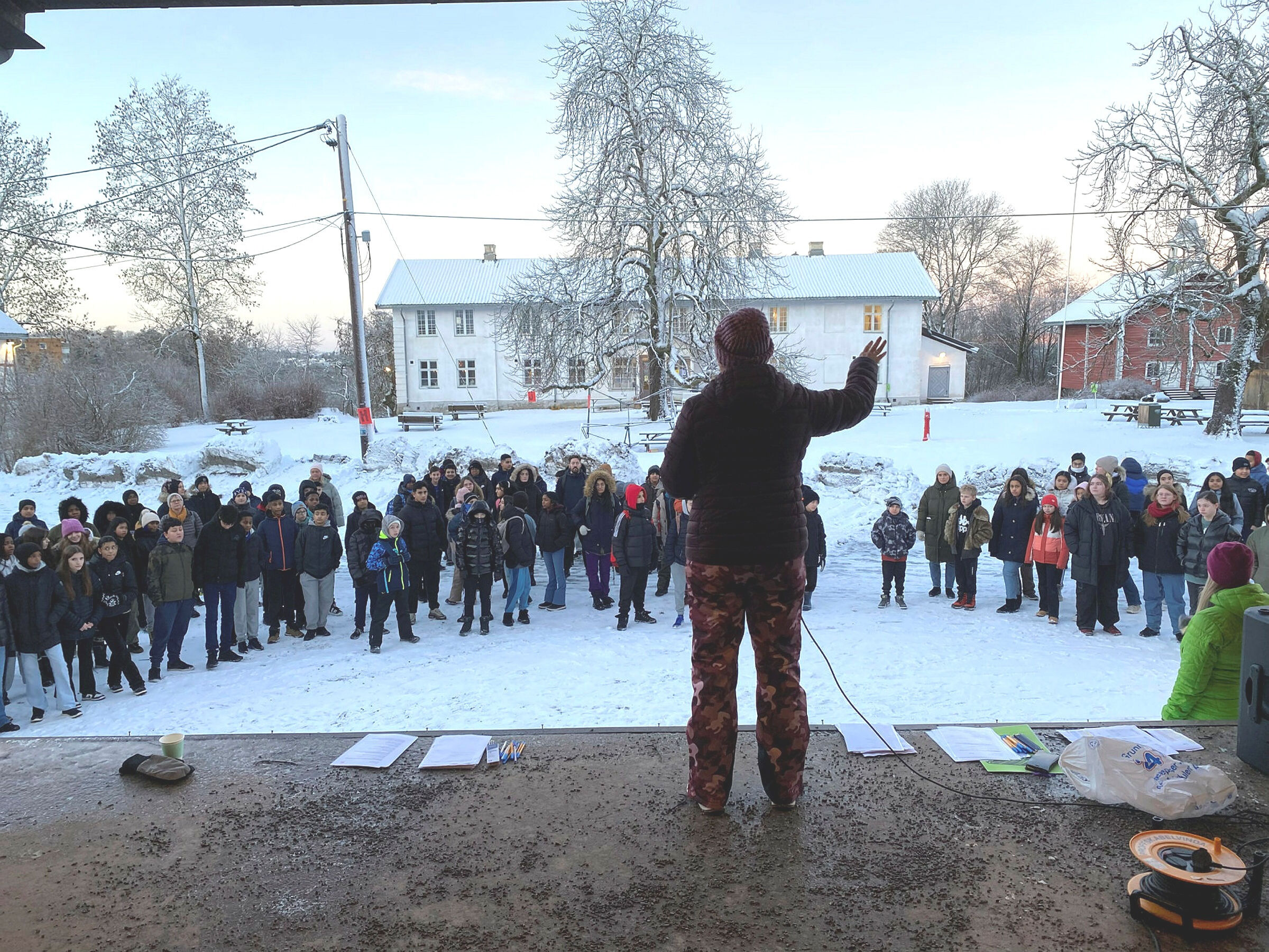 MER ENN 150 ELEVER: Startet dagen på Tveten gård med en pep-talk fra Inga-Lise Nordlys. Foto: Sindre Veum ApnesethBilde 1 av 1