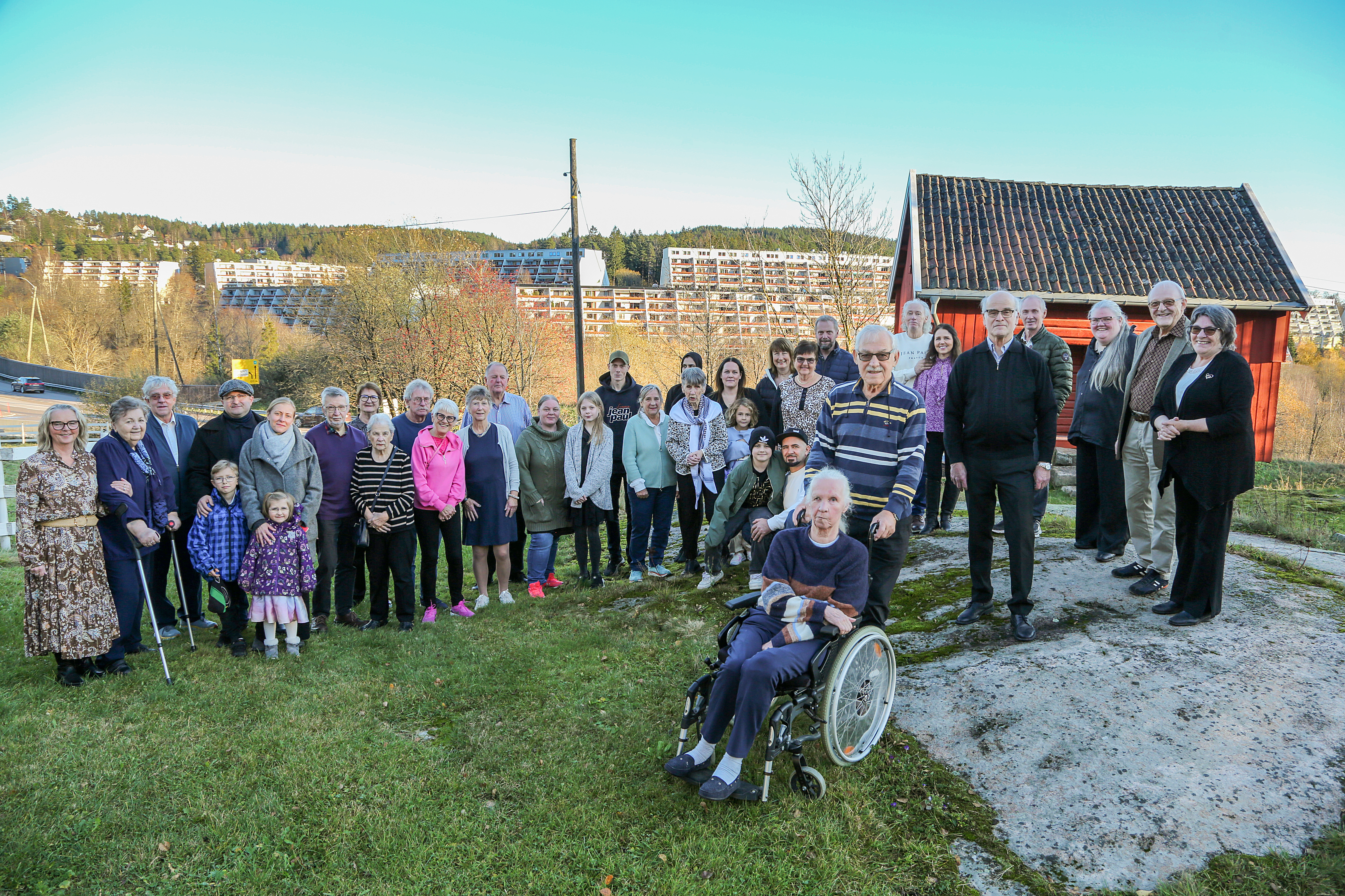 FEIRET: 50-årsjubileet til Vestliskrenten sameie (de fire terrasseblokkene ses i bakgrunnen nærmest og videre bak stabburet) ble feiret med en hyggelig sammenkomst på Bånkall gård.Bilde 1 av 10