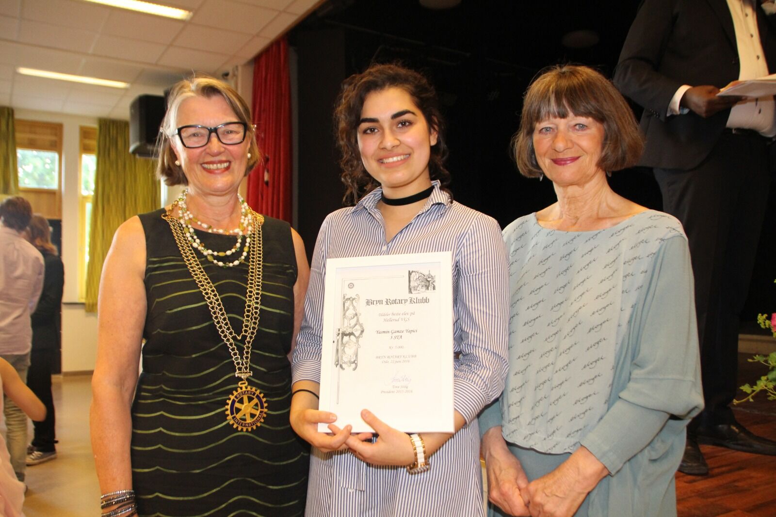 VANT PRIS: President Tove Steig i Bryn Rotaryklubb delte ut Rotaryprisen til Yasmin Gamze Yapici. Her sammen med rektor Tora Mørstad. Foto:Bilde 1 av 1 Skoleavslutning Hellerud videregående skole: Fikk pris for lite fravær og gode karakterer Martine Myhre Publisert 25. jun 16 kl. 18:00 Del på sosiale medier Del Facebook Twitter E-post Abonnement