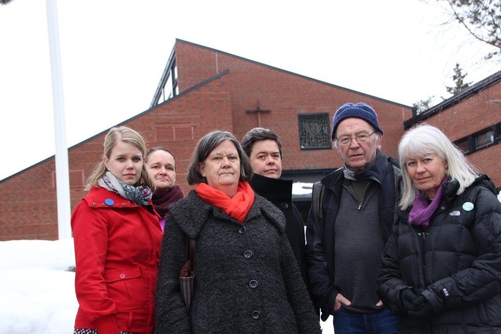 VIL KJEMPE FOR KIRKEN SIN: F.v: Kapellan Annette Dreyer, Kerstin Kapsberger, Anne Grete Orlien, sogneprest Hanne Slåtten, Hans Rolijordet og Astrid Kjellevold. Foto:Bilde 1 av 5
