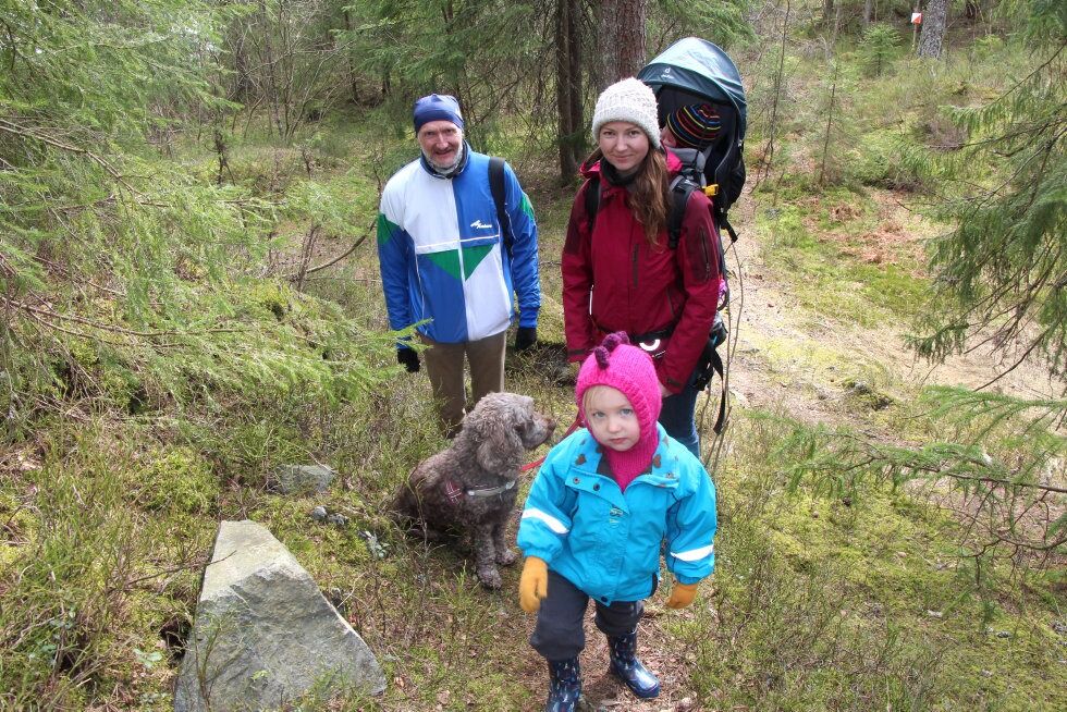 LAVTERSKEL: Lillomarka O-lags turorienteringsprogram Lill-o-dilten egner seg godt for hele familien og er enkelt å ta del i. Det er hengt fram 80 poster man kan bryne seg på, og for de minste er det et eget program med Mini-o-dilten. Her med Johan Mattsson, Ragnhild Wengaard med Astrid på ryggen, og Birgit fremst i følget. Foto:Bilde 1 av 1