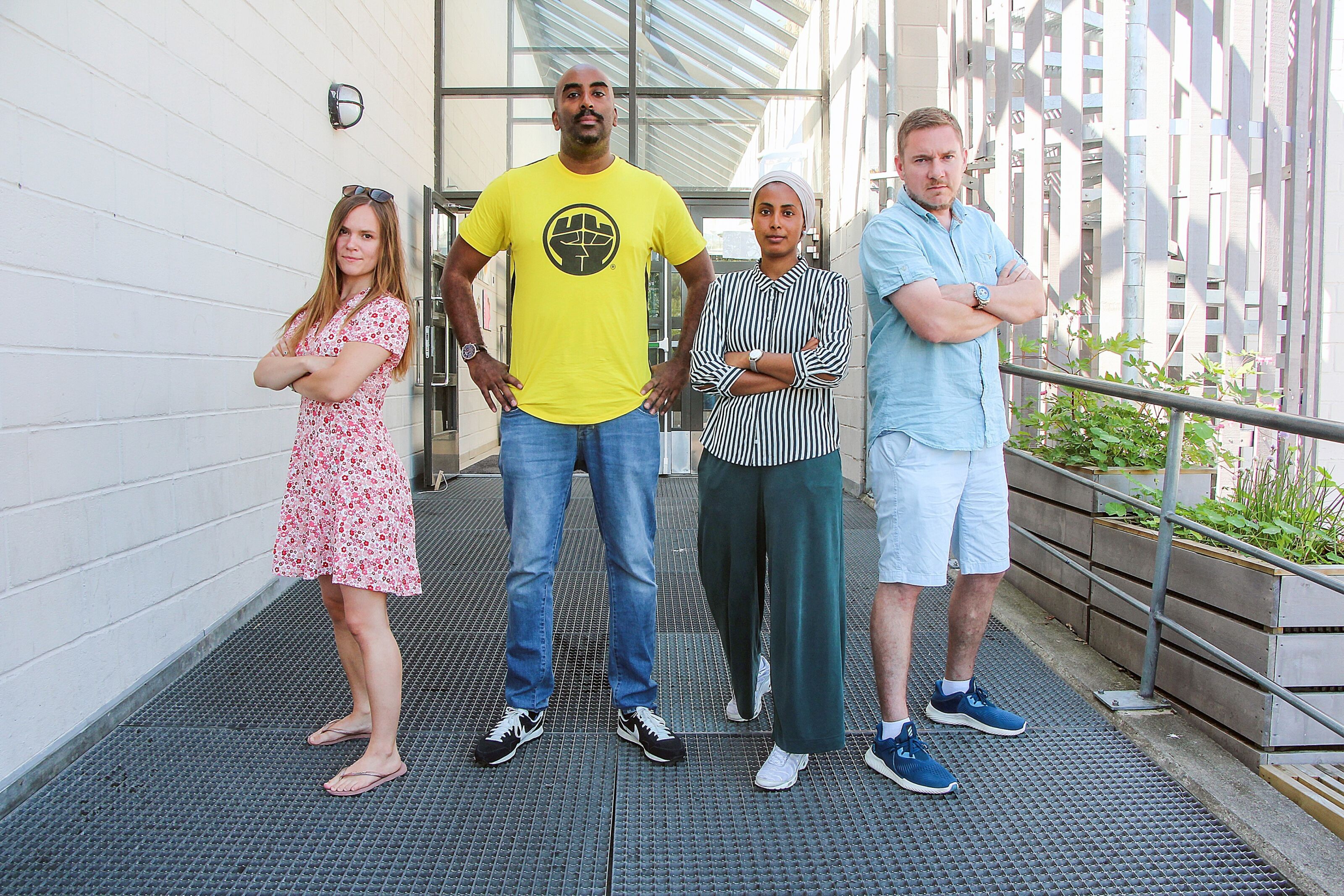 Stopp Islamiseringen av Norge planlegger markering på Furuset. Furuset IF rigger i stand til både festival og fotballturnering samtidig som markeringen. Håpet er å ta ordet fra SIAN. Bydel Alna har bevilget penger til Furuset IF og en mangfoldsfestival på Furuset lørdag 15. august. 14. og 15. august sparkes også superhelt-fotballturneringen i gang. Samme helg har SIAN markering på Furuset, men både bydelen og idrettsforeningen håper folk heller ville bruke helgen til å feire mangfoldet på Furuset. Her med Mari Morken (f.v.), Josef Yohannes, Yusra Hasan og Rune Gjelberg. Foto:Bilde 1 av 2