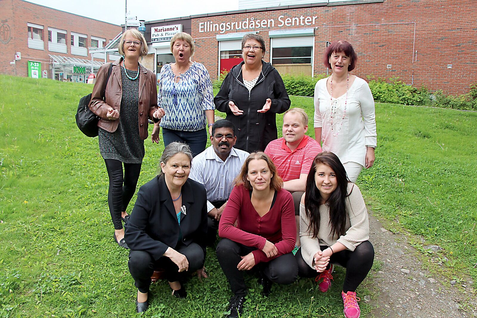 SYNGE SOMMEREN INN: Førstkommende helg, fredag 13.-søndag 15. juni, er det igjen klart for Ellingsruddagene. Leder Anne Grete Orlien av Ellingsrud Velforening, medlem Monika Ustad, Ganeshamoorthy Nadarajah, Frode Westad og Aurora Kokstad gleder seg til feststemning sammen med Tove Sveen, Greta Jensen, Eva Aspaas og Wenche Haga i koret Sønnavind. Foto:Bilde 1 av 1