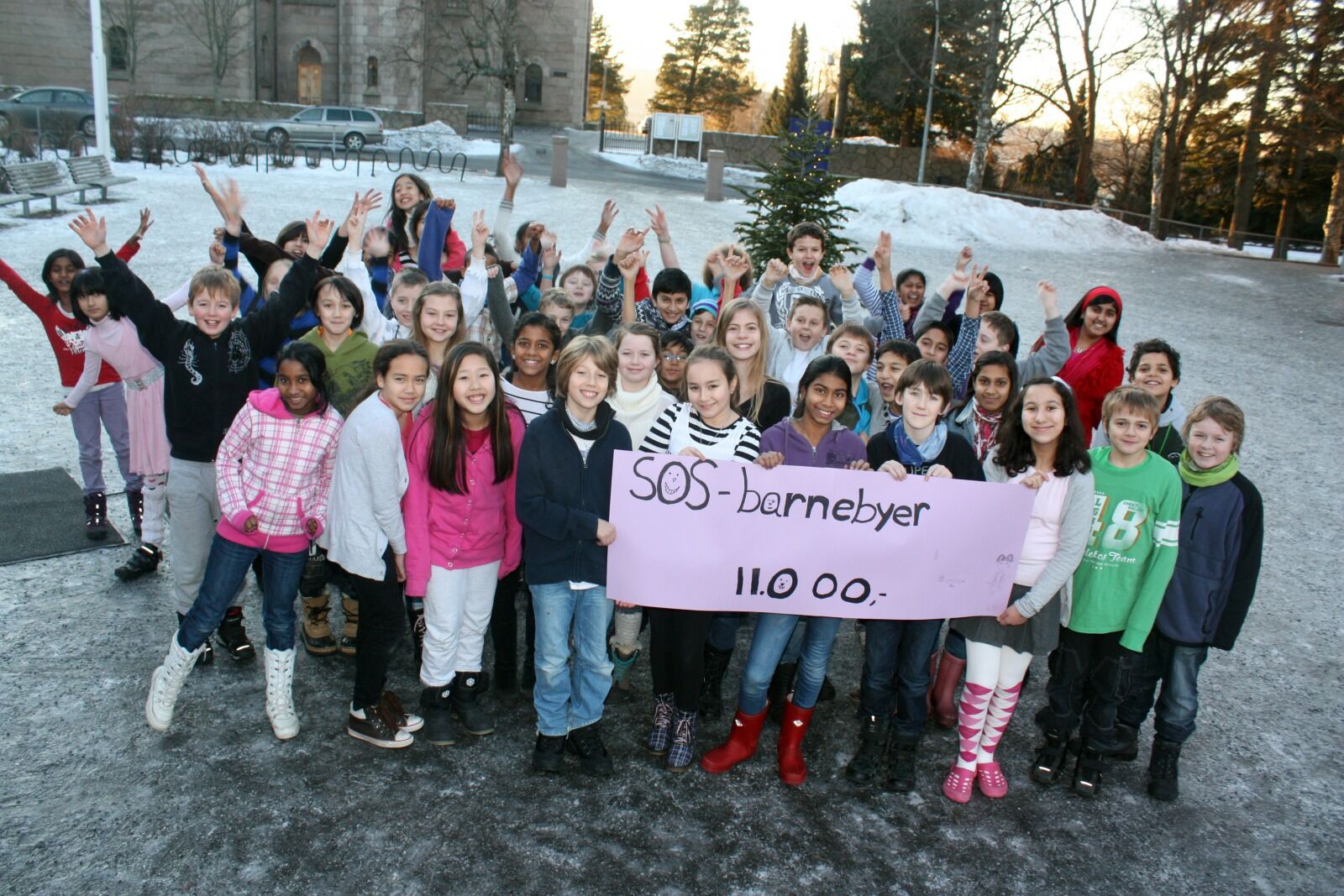 Jubelen sto i taket da gladnyheten kom på den siste skoledagen før juleferien. De 50 elevene i sjetteklasse har siden midten av november og fram til midten av desember fått prøve seg i arbeidslivet. Lønningene var øremerket som bistand til SOS-barnebyer.