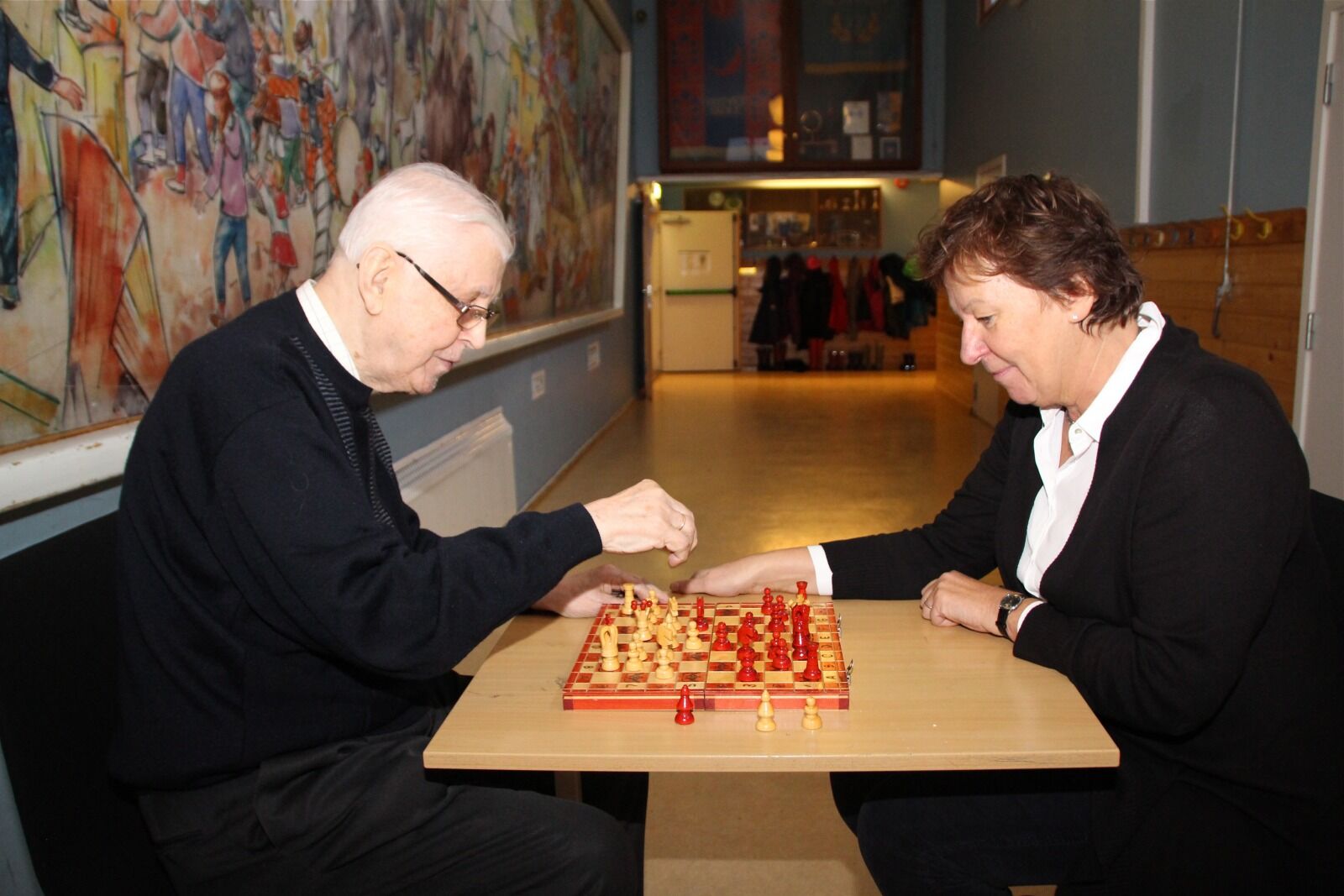 50 ÅR SIDEN: Sjakklærer Bror Børge Eeg og elev Marianne Borgen møtes etter mange år på stedet der alt startet. Foto:Bilde 1 av 1 Gjenforeningen Mie Andersen Publisert 2. des 14 kl. 06:00 Del på sosiale medier Del Facebook Twitter E-post Abonnement