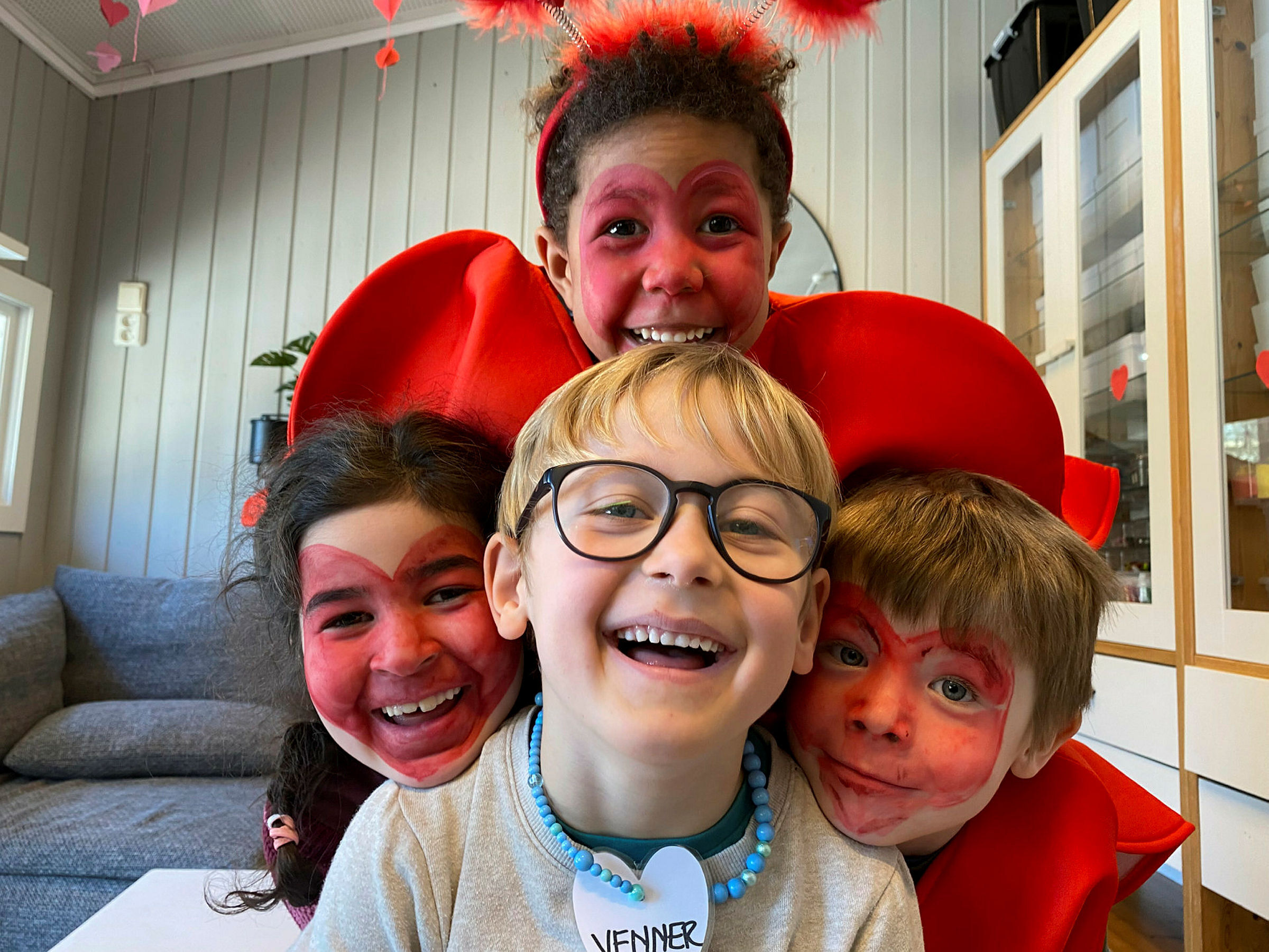 HJERTEROM PÅ JERIKO: Trøste og Bære er i sin andre uke av Hjerteukene på Jeriko. Her med Noor (t.v), Magnus (bak), Ludvig og Filip i midten. Foto: Sindre Veum ApnesethBilde 1 av 1