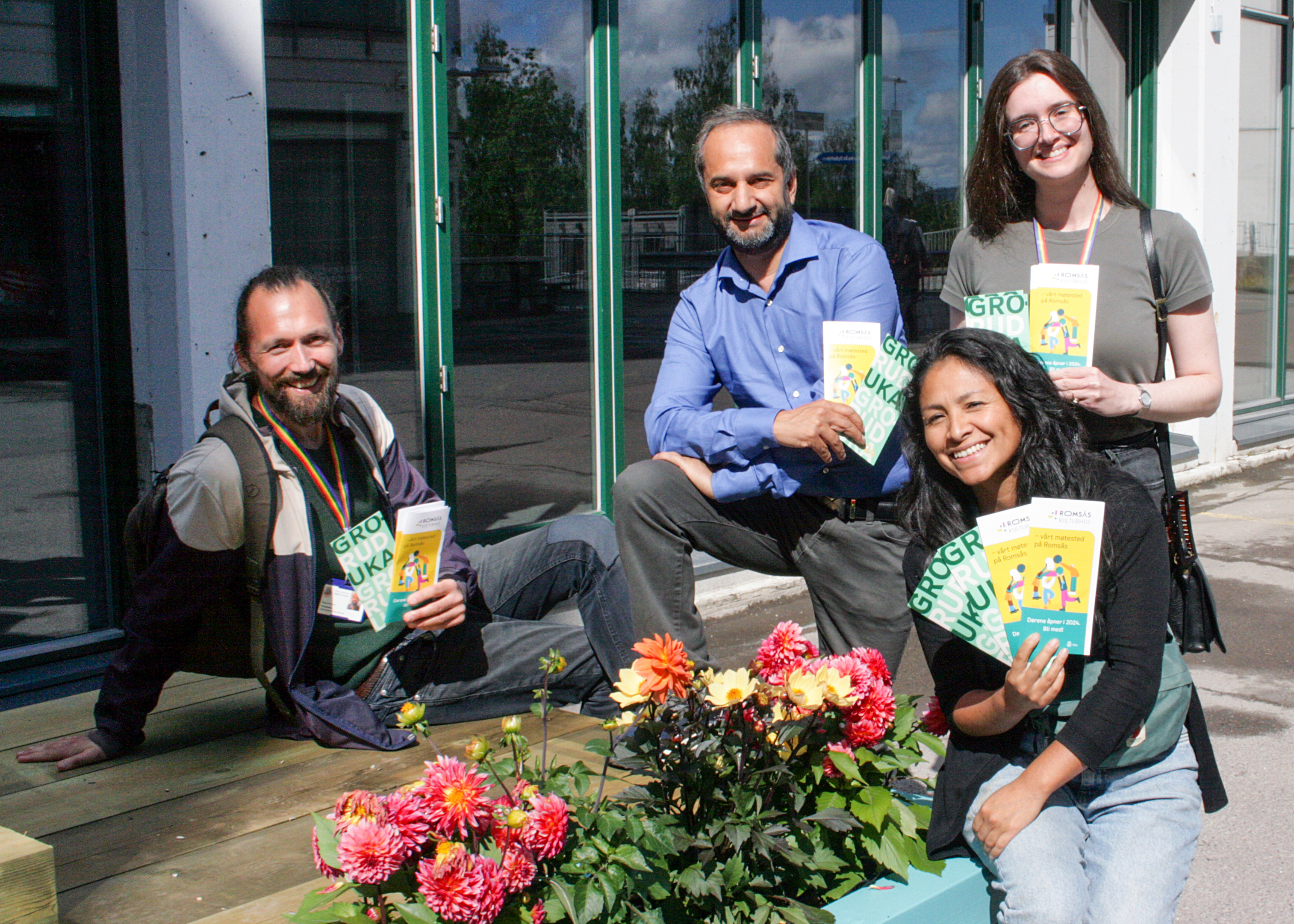 NY BELIGGENHET: Tidligere har Groruduka blitt åpnet på Ammerud, men i år har festen flytta på seg til nye Romsås Kulturhus. Samtidig som Groruduka åpner, åpner også kulturhuset. Her med Zeena Beale (f.v.), Paloma Leon, Habib Tahir og Terje Smedsrud Halin.