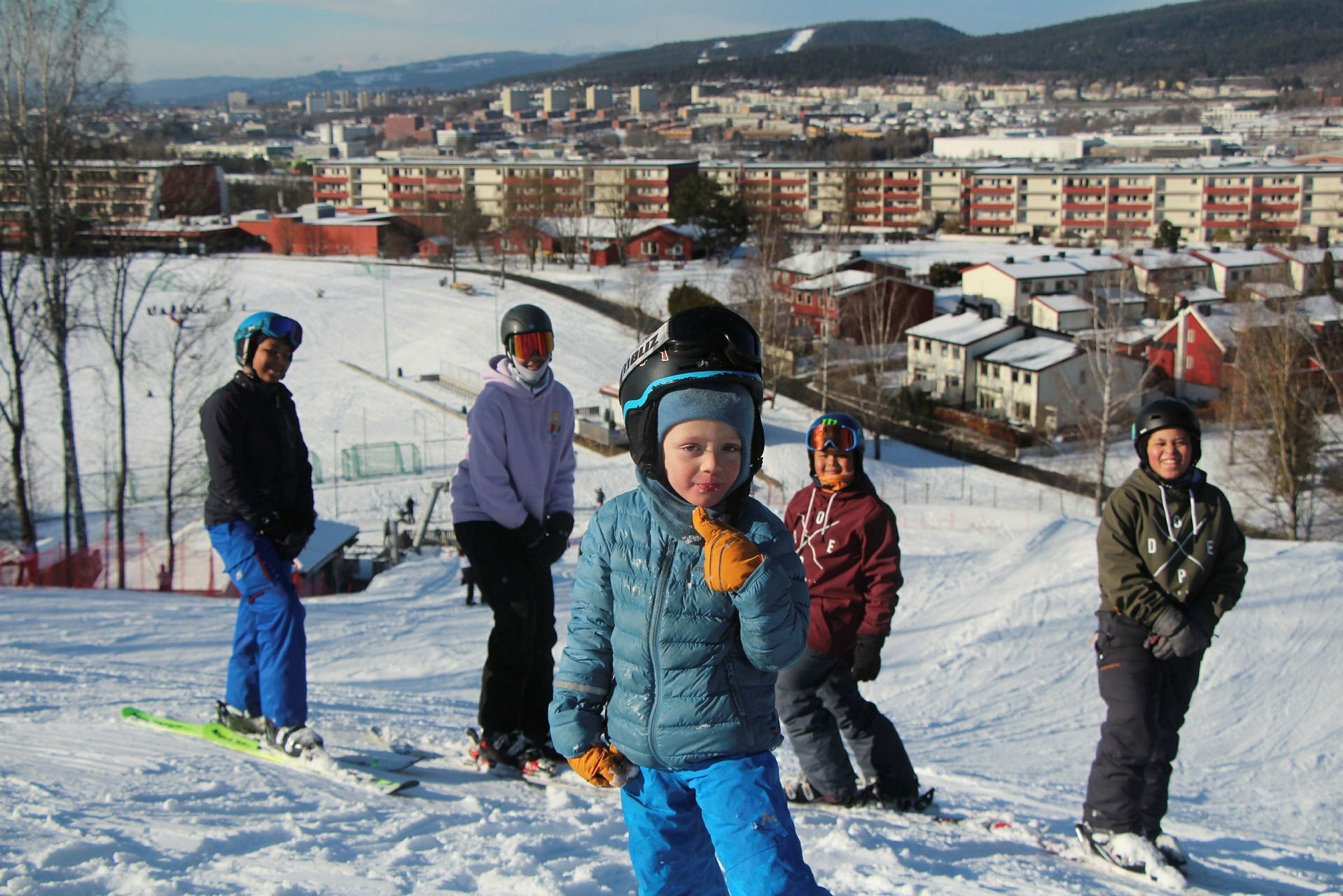 Kameratene Aksel, Andreas, Nicolai, Abel og Gard trives også på Tryvann og i andre slalåmbakker. Men Jerikobakken er nærmere, og det er trygt. – Ingen her som ler når jeg faller.