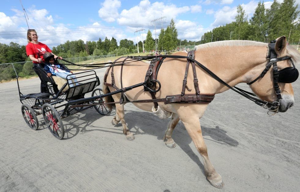 SPENNENDE HESTETUR: Det er mange barn som for første gang i sitt liv kommer i nærkontakt med hester i forbindelse med barnas hestefestival - og ekstra spenning er det å få en tur alene med kun kusk og hest! Foto:Bilde 1 av 8