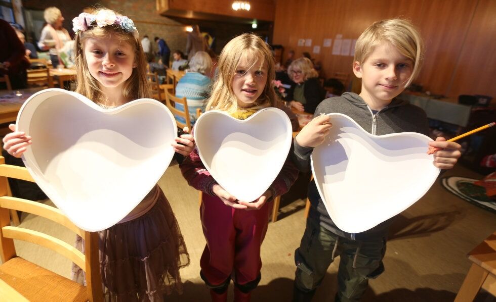 HJERTELIGE GEVINSTER: Leah (8), f.v.) vant et hjertesett i tre deler på åresalg dagen før bursdagen. Men hun ga en del hver til Alma (8) og Johannes (10). Men det var fullt lovlig å beholde det største hjertet selv, siden det var hun som vant og hun som dagen etter kunne feire at hun runder 9 år. Foto:Bilde 1 av 4