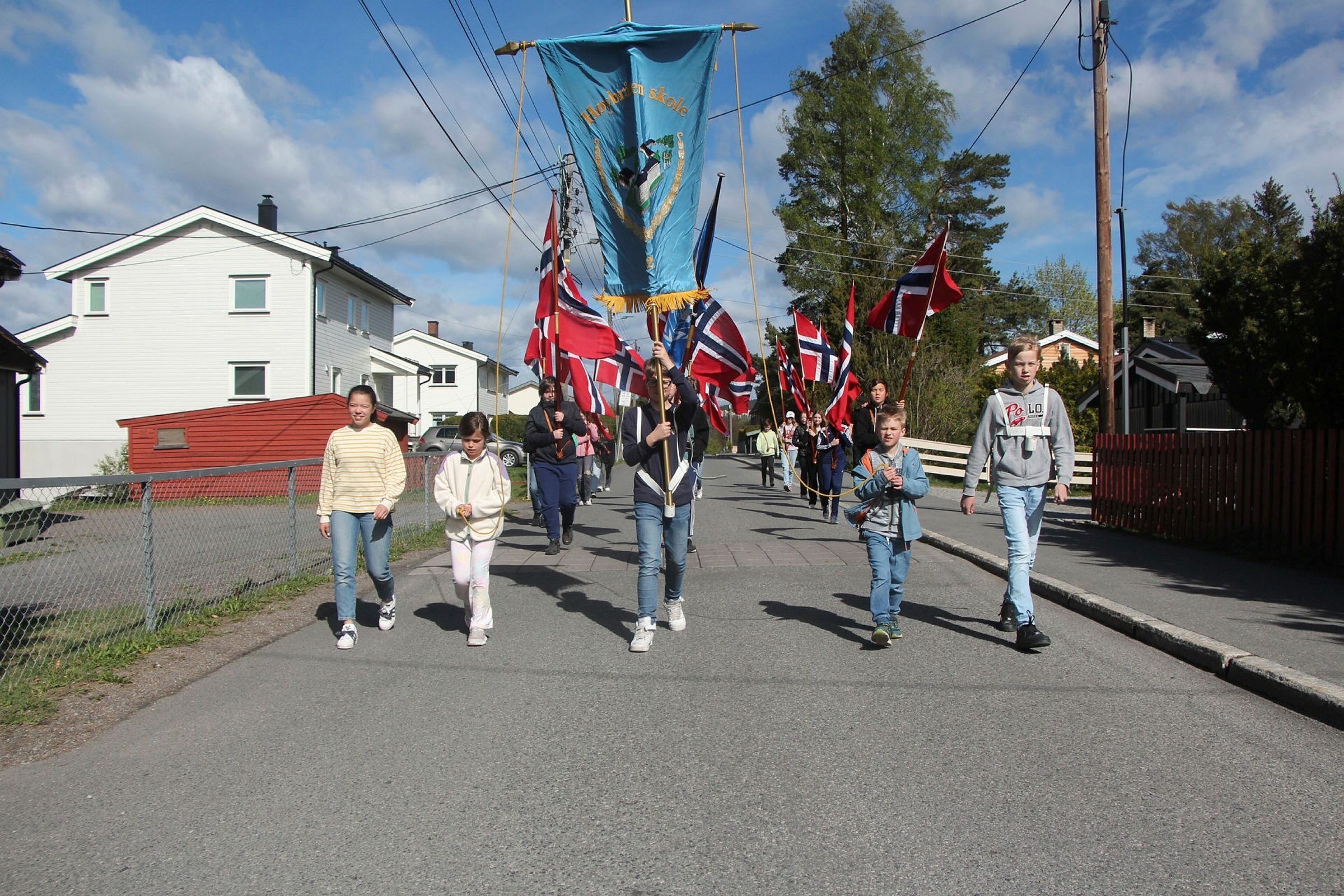 Høybråten skole øver seg på å gå først i barnetoget