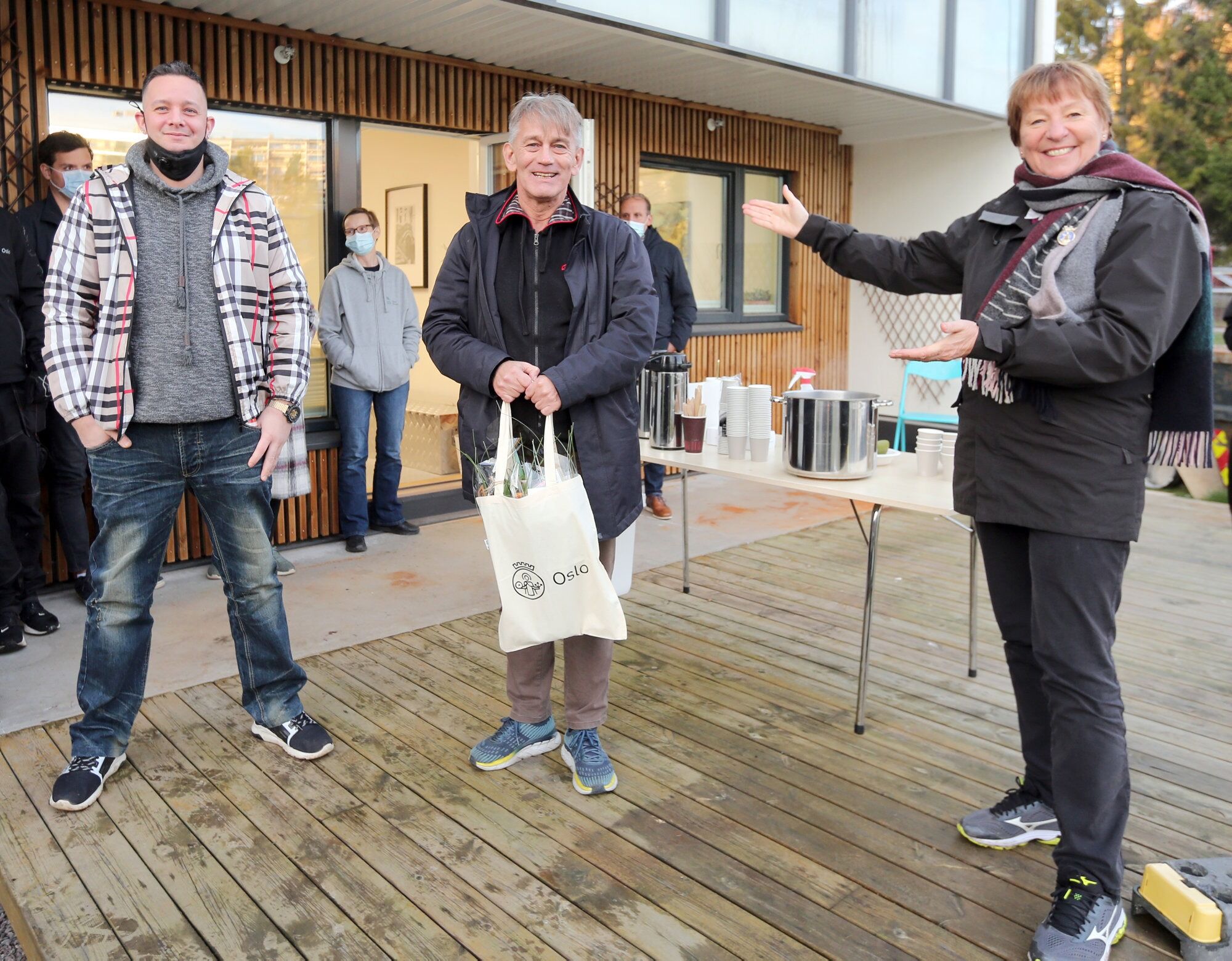 VELFORTJENT HEDER:Kenneth Korsrud Arnesen (f.v.) kan ikke få fullrost Helge Simonsen i ROP nok for at han har hjulpet ham på rett vei i livet. Dermed tok han kontakt med ordfører Marianne Borgen, som fort skjønte at her var det en hverdagshelt som fortjente en spesiell oppmerksomhet. Foto:Bilde 1 av 2
