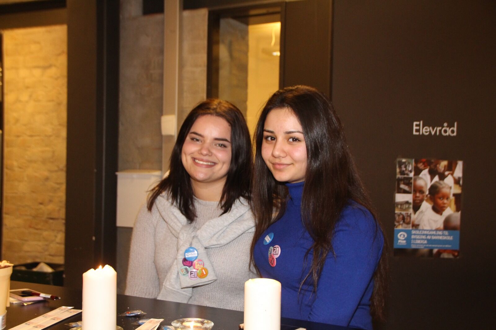 Sara Yagci (16) og Valencia Rodrigues (16) går på 1. trinn på Fyrstikkalleen skole (F21). Begge sitter i elevrådet og er på plass på åpen dag for å fortelle hva skolen har å tilby.