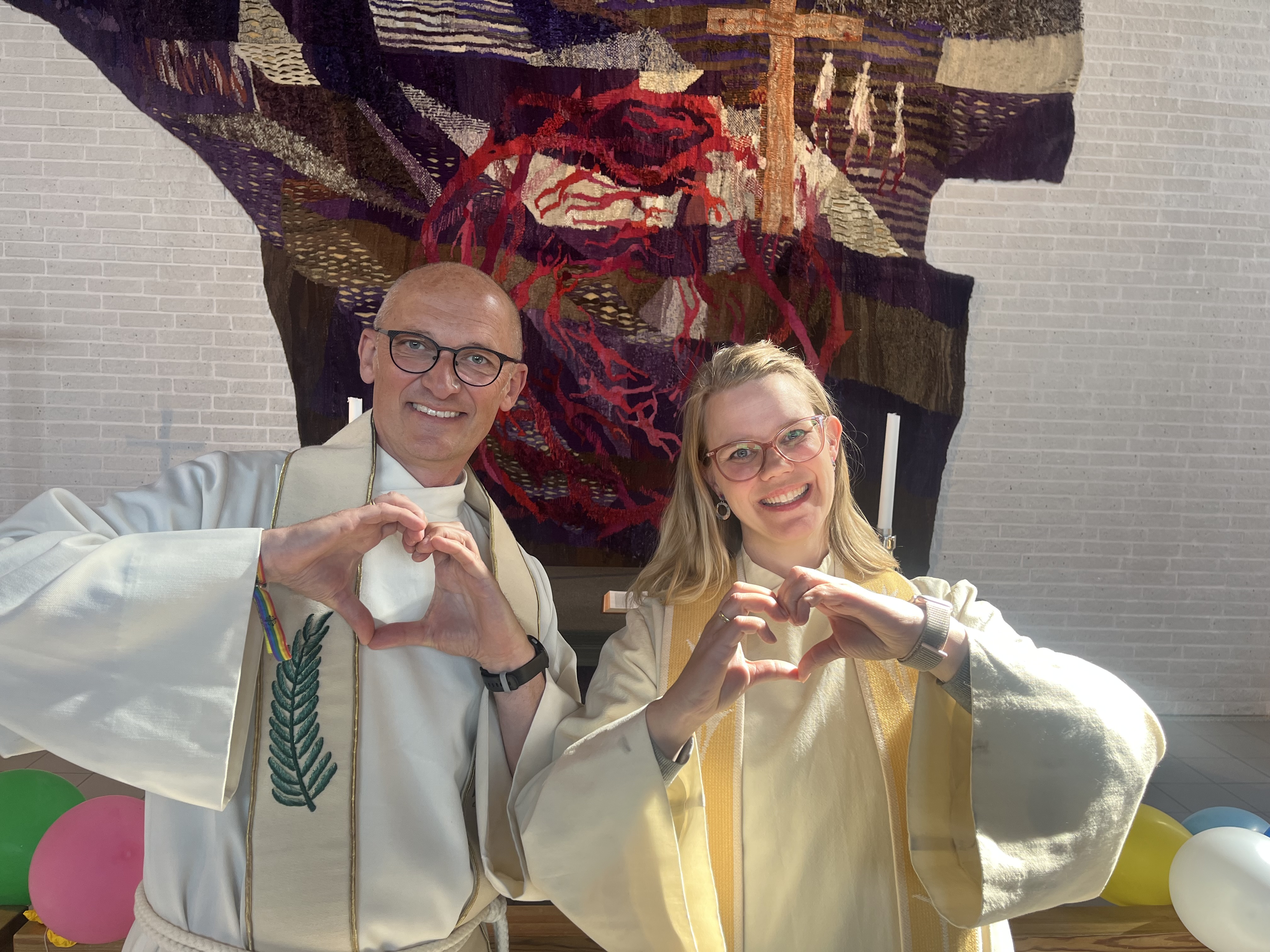 HJERTELIG INVITASJON: Berbom og Dreyer viser med hele seg at kjærligheten står i sentrum når Haugerud kirke åpner dørene for alle som vil feire tro og samliv – helt enkelt.Bilde 1 av 2